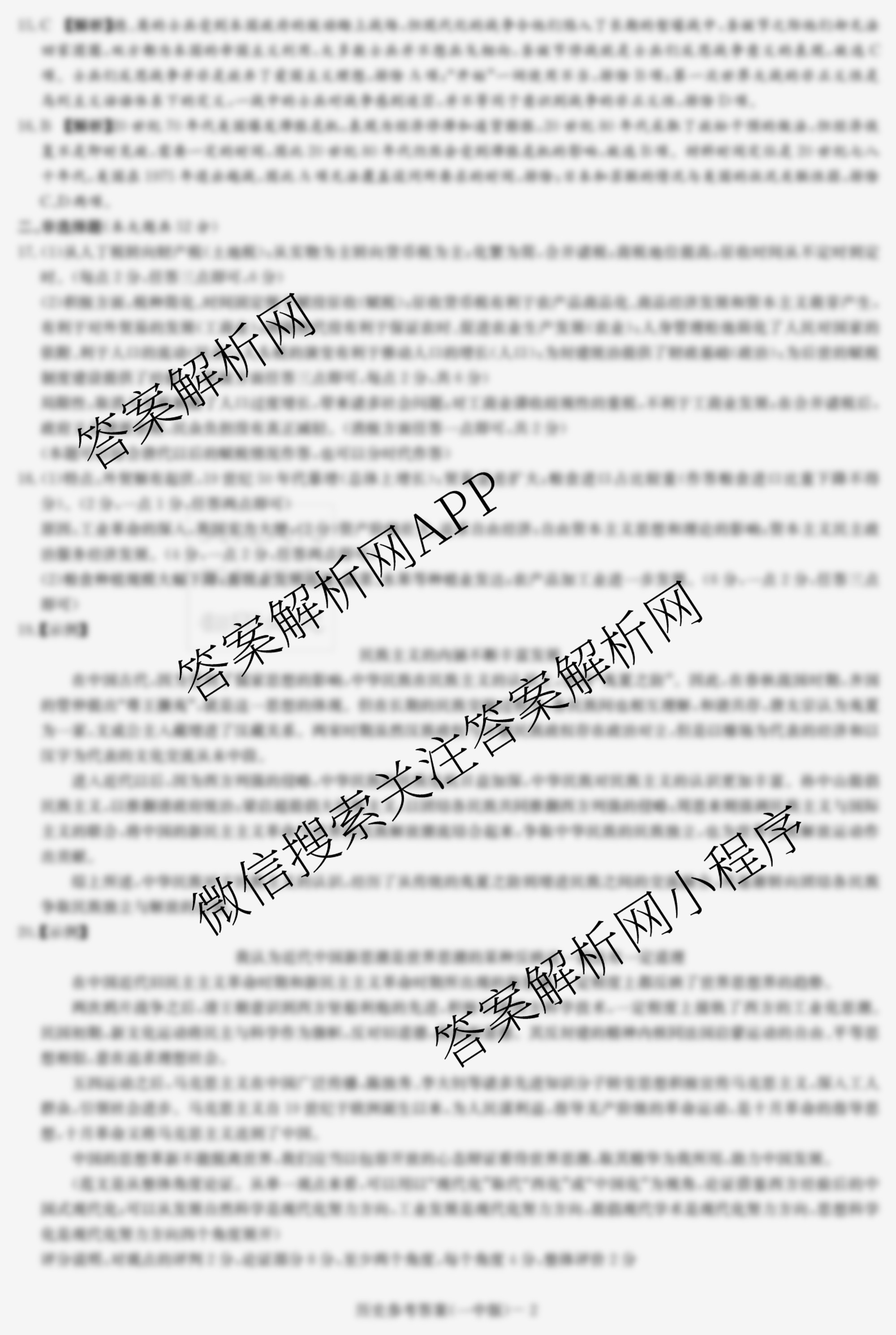 2023届高三(炎德英才大联考)长沙市一中模拟试卷(二)历史答案