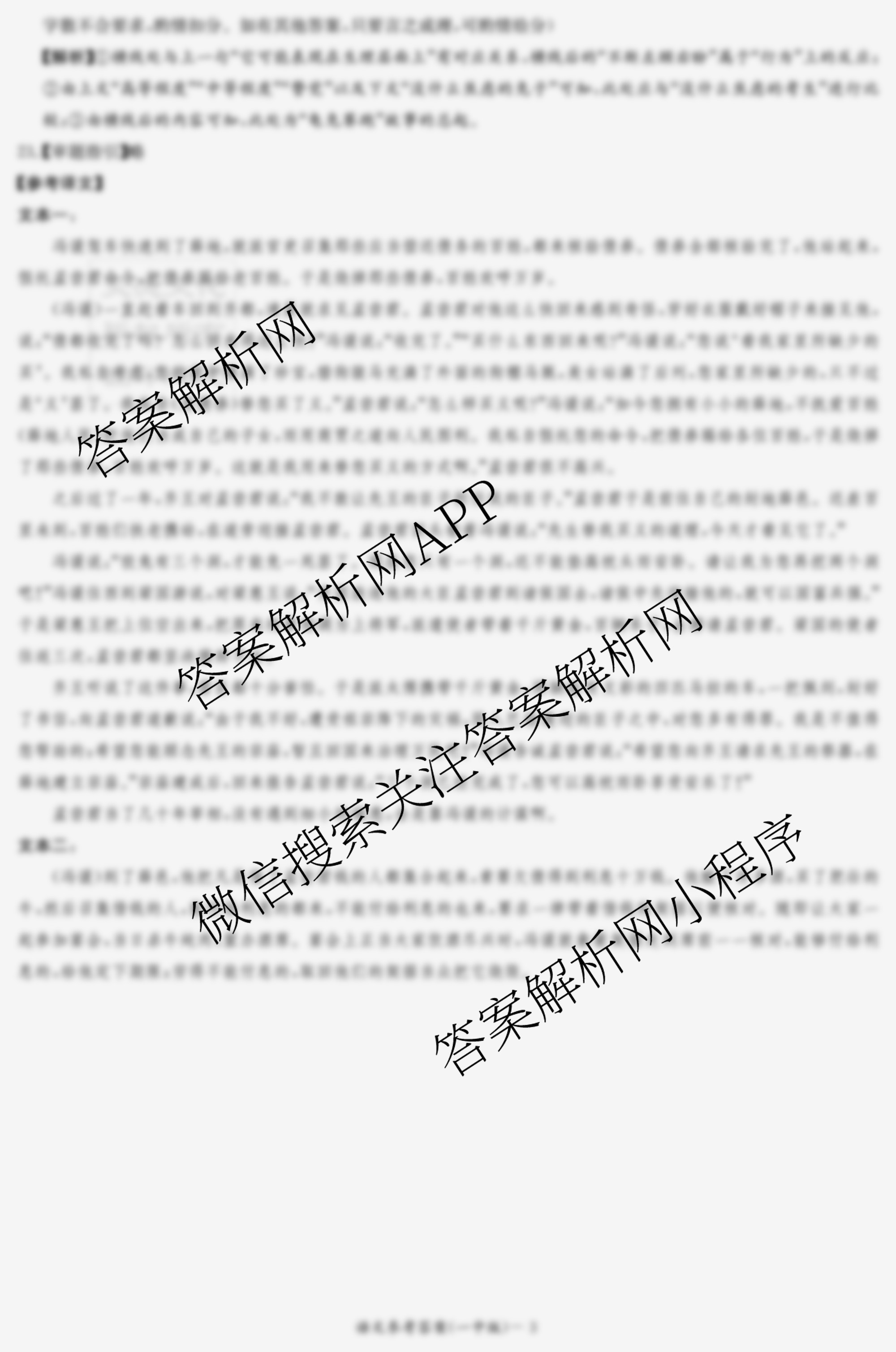 - [炎德英才大联考]长沙市一中2023届模拟试卷(二)语文答案