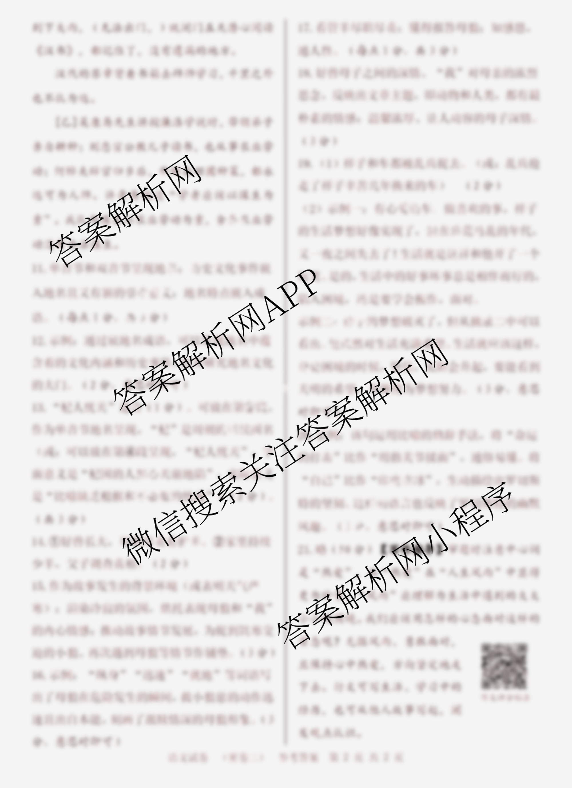 - 九年级文博志鸿2023年河北省初中毕业生升学文化课模拟考试(密卷二)语文答案