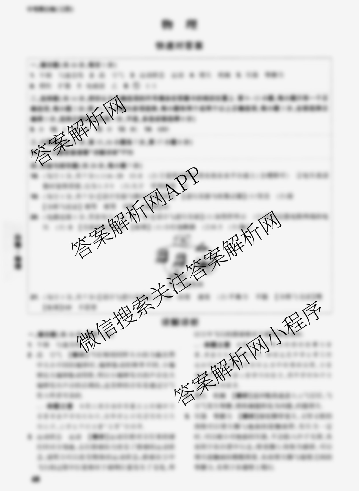 - (九年级)(万唯)·江西省2023年初中学业水平考试黑白卷 物理(白卷)答案