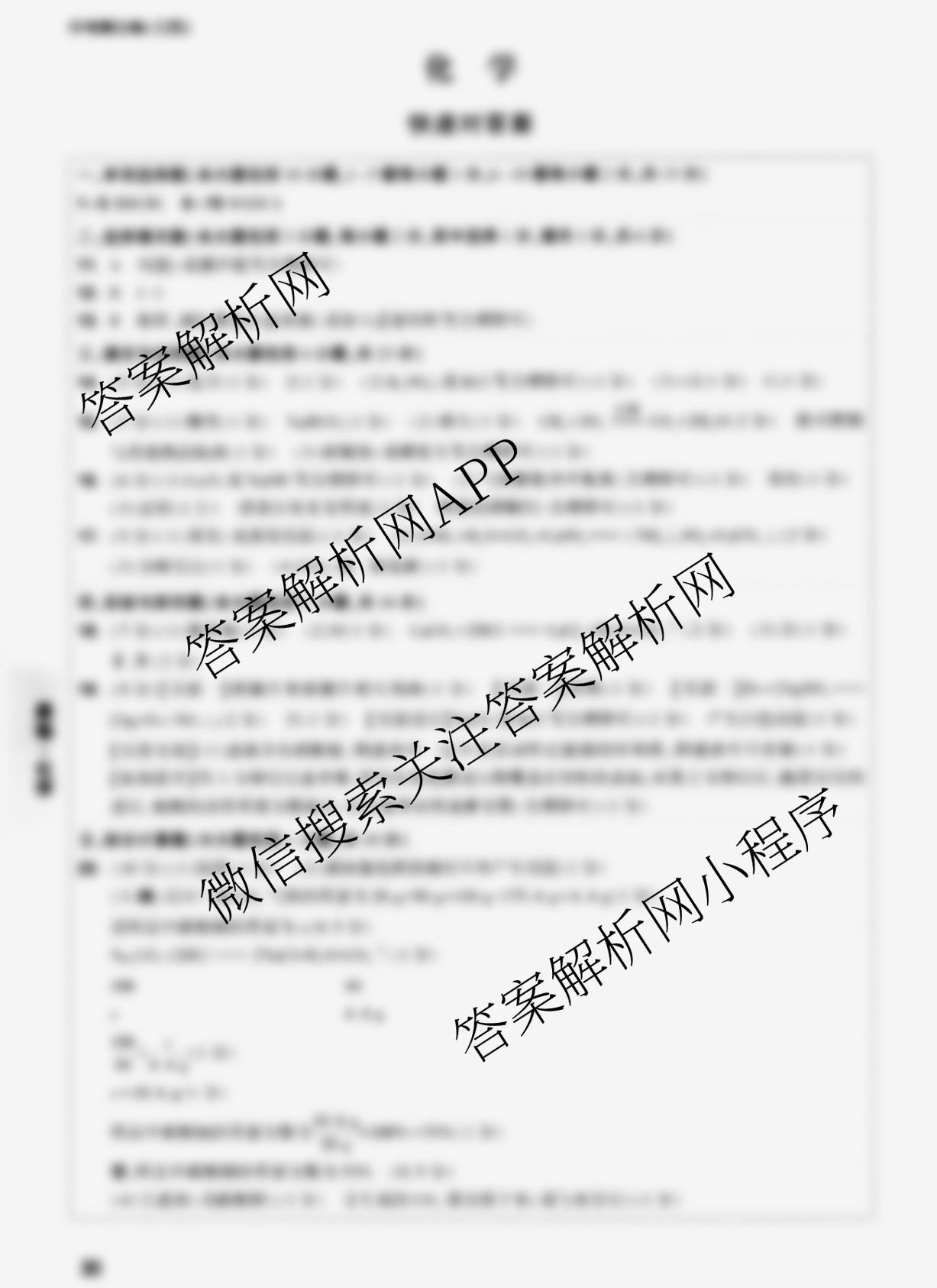 - [万唯]江西省2023年初中学业水平考试黑白卷 化学(黑卷)答案