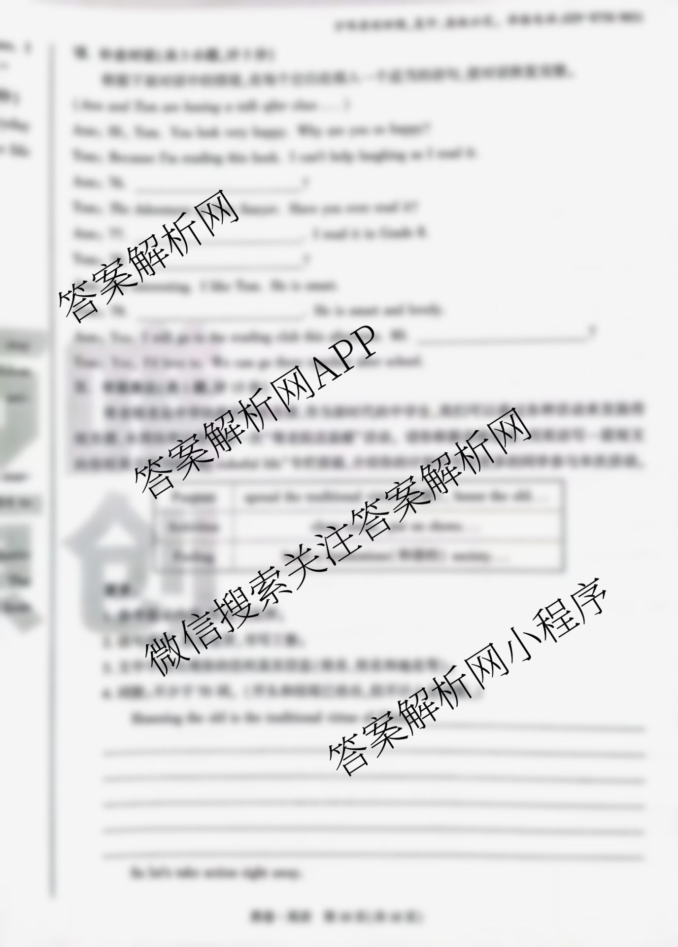 - [万唯]2023年陕西省初中学业水平考试黑白卷 白卷 英语答案