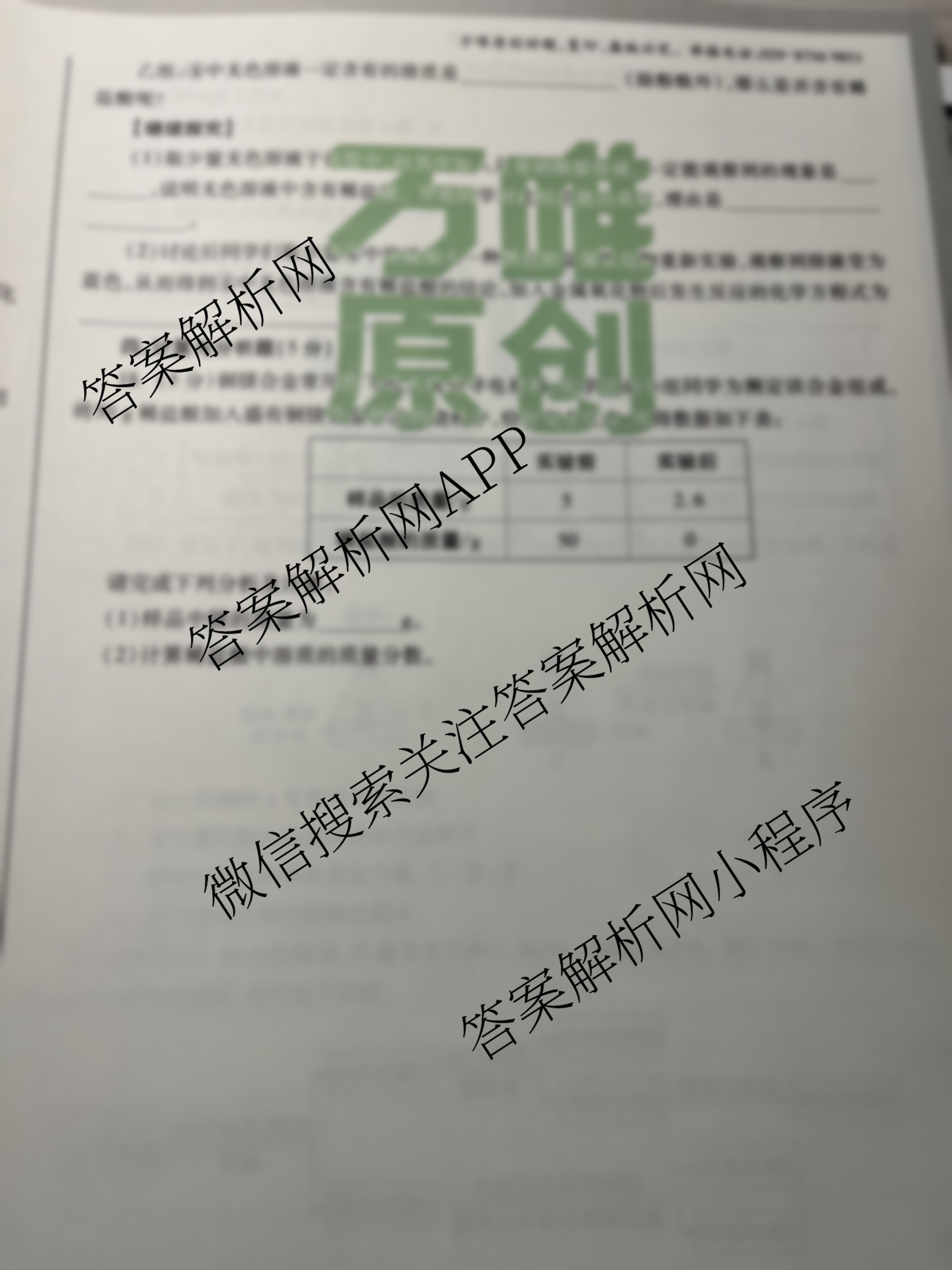 - [万唯]2023年陕西省初中学业水平考试黑白卷 白卷 化学答案