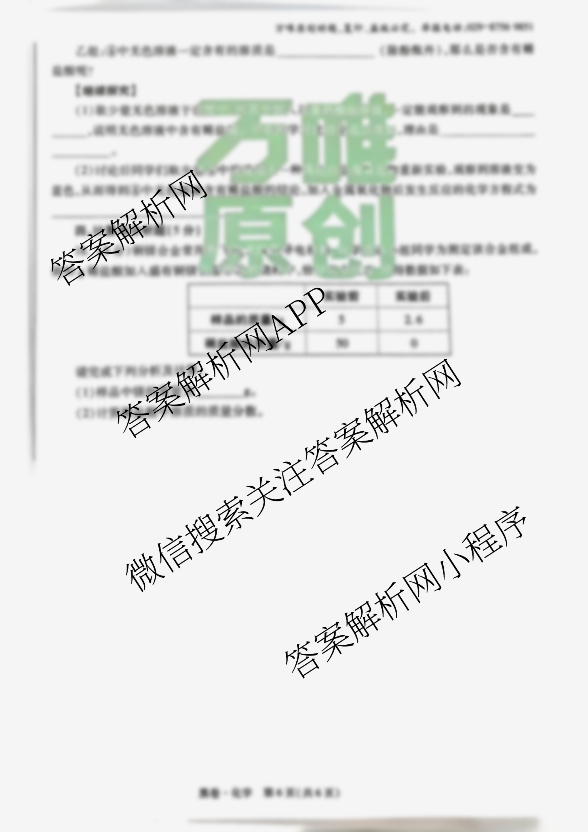 - [万唯]2023年陕西省初中学业水平考试黑白卷 白卷 化学答案