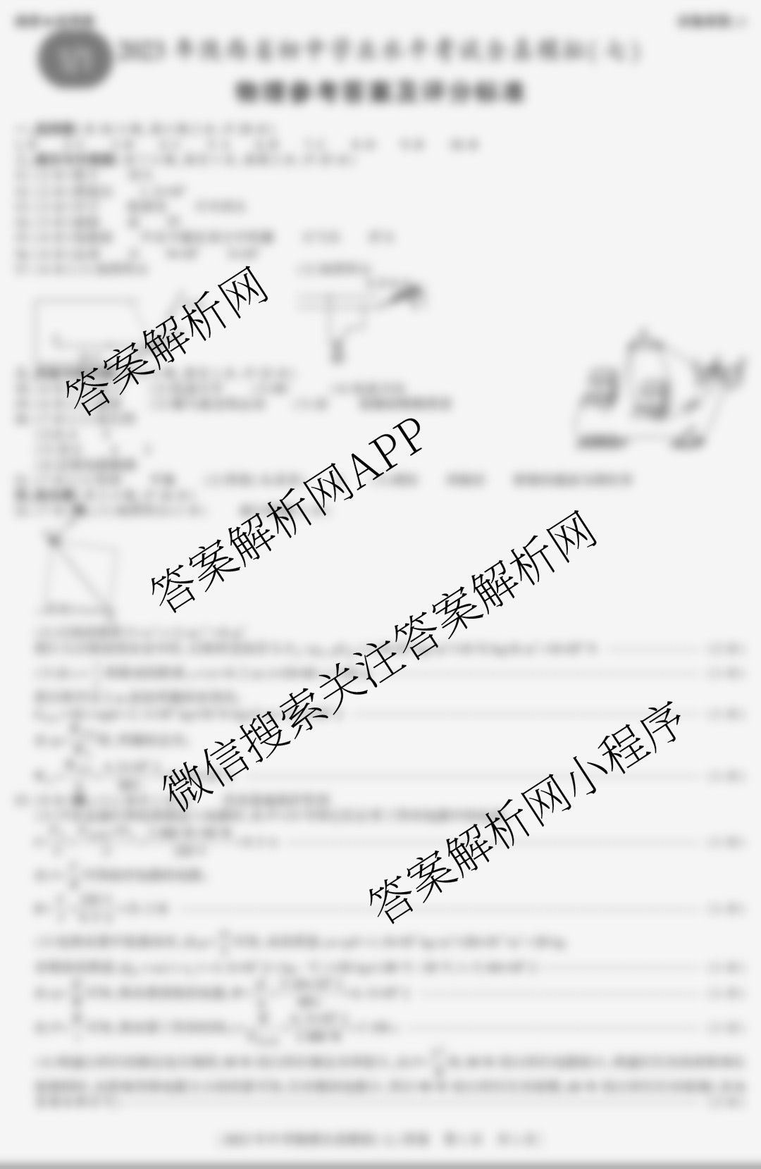 - 陕西[益卷]2023年陕西省初中学业水平考试全真模拟卷(七)物理(A)答案
