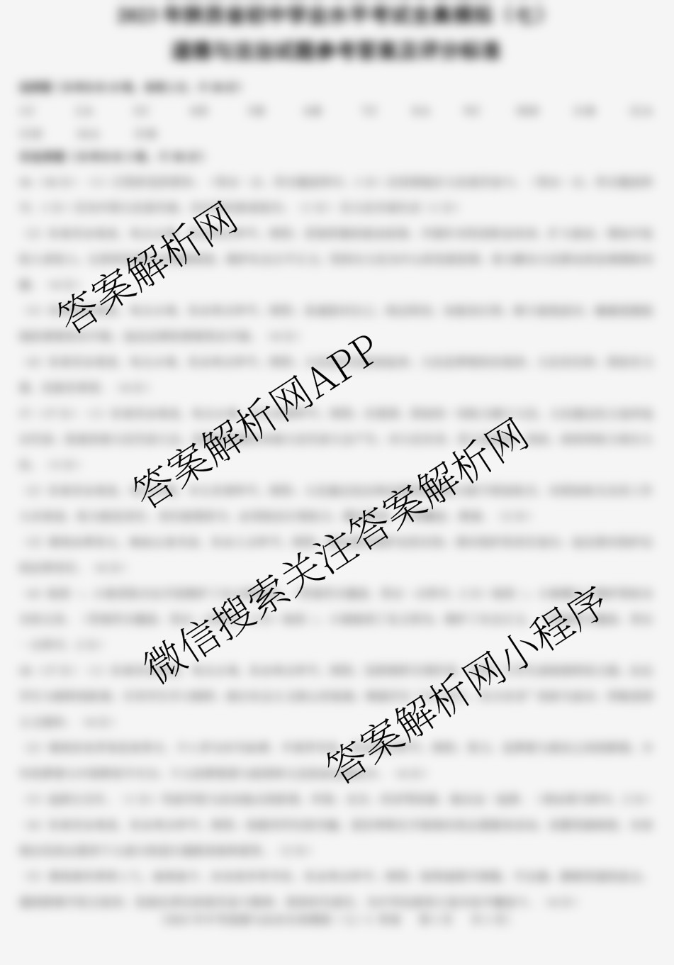 - 陕西[益卷]2023年陕西省初中学业水平考试全真模拟卷(七)语文(A)答案