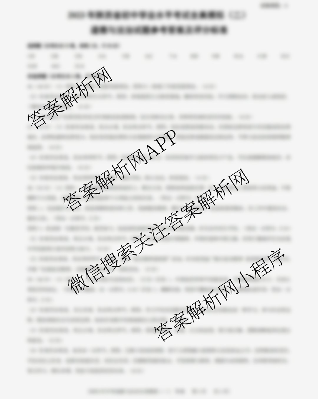 - [九年级]陕西[益卷]2023年陕西省初中学业水考试全真模拟(二)道德与法治(A)答案
