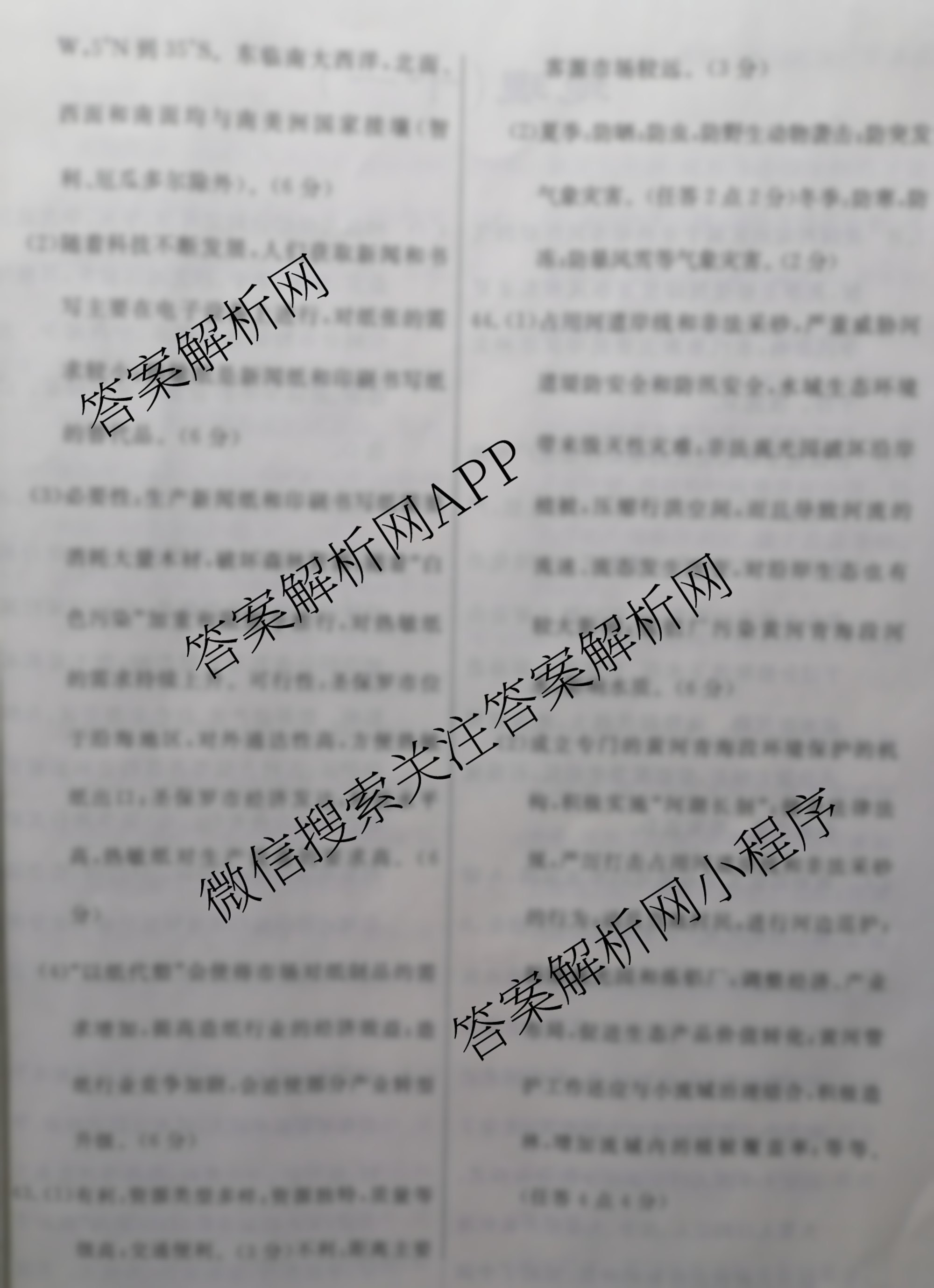 2023届高三总复习S3名师原创模拟地理(十)10答案