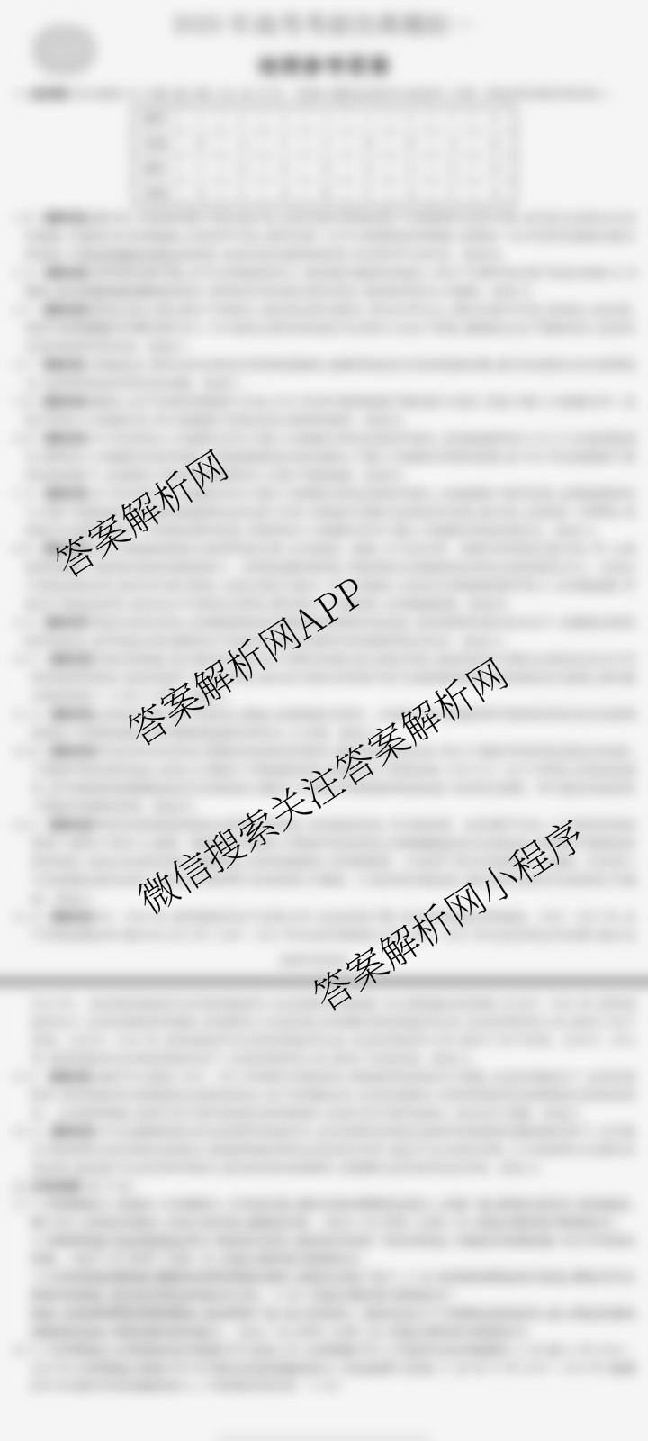 - (高三)(炎德英才大联考)2023年高考考前仿真模拟一 政治答案