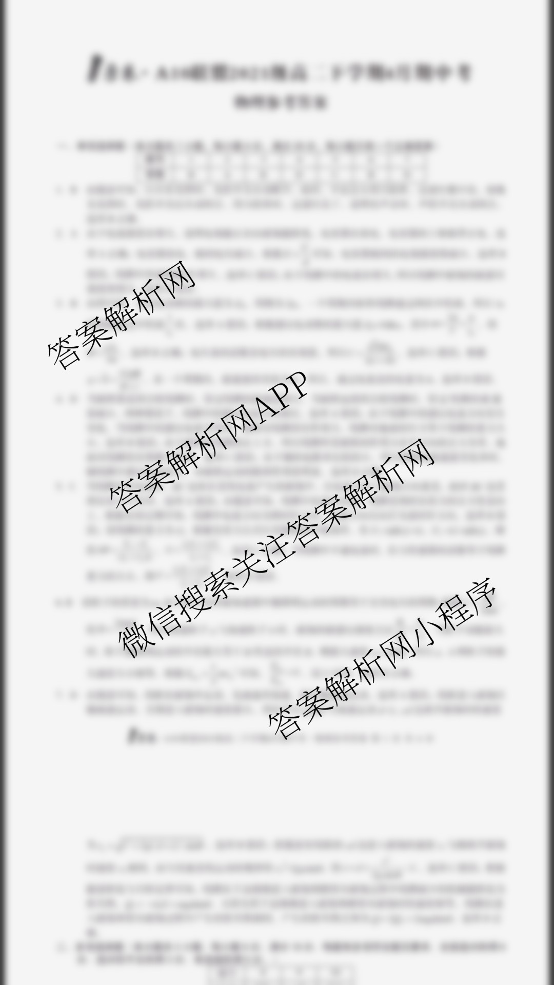 - [高二](1号卷)A10联盟2021级四月下学期中物理答案