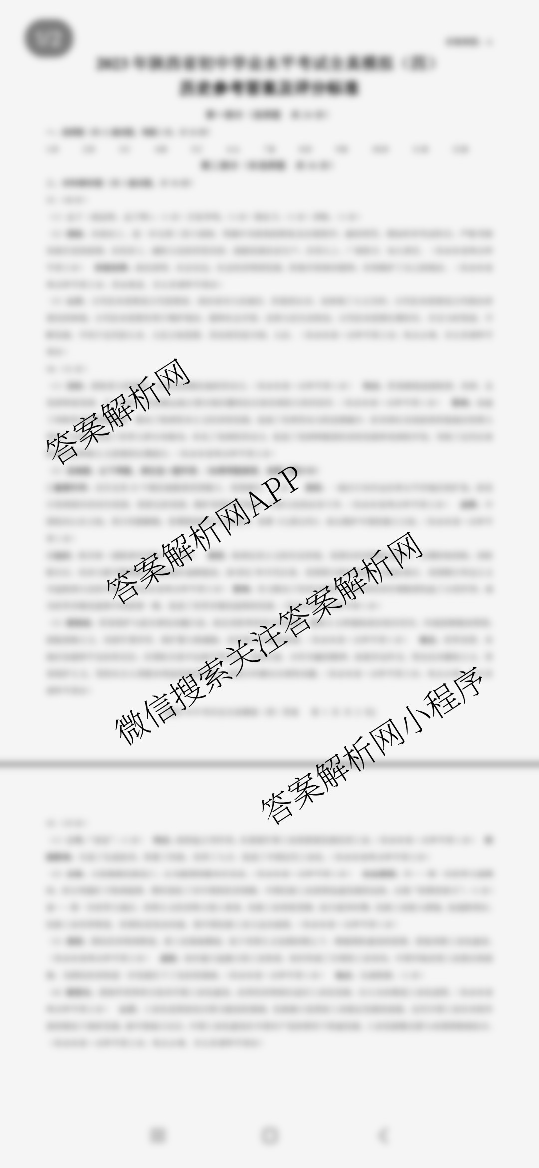 - (九年级)陕西[益卷] 2023年陕西省初中学业水平考试全真模拟卷(四)历史(A)答案