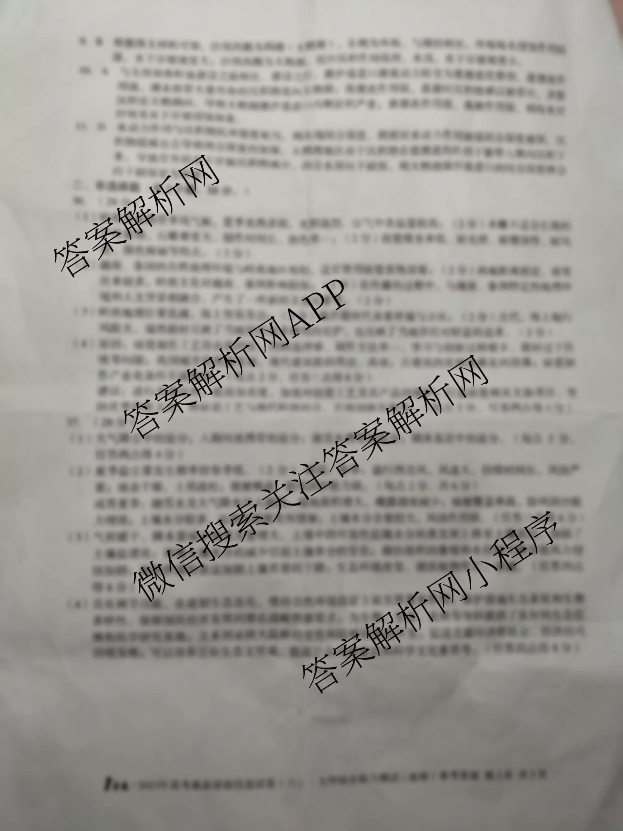 (高三)(1号卷)·2023届全国高考最新原创信息试卷(六)6文综答案
