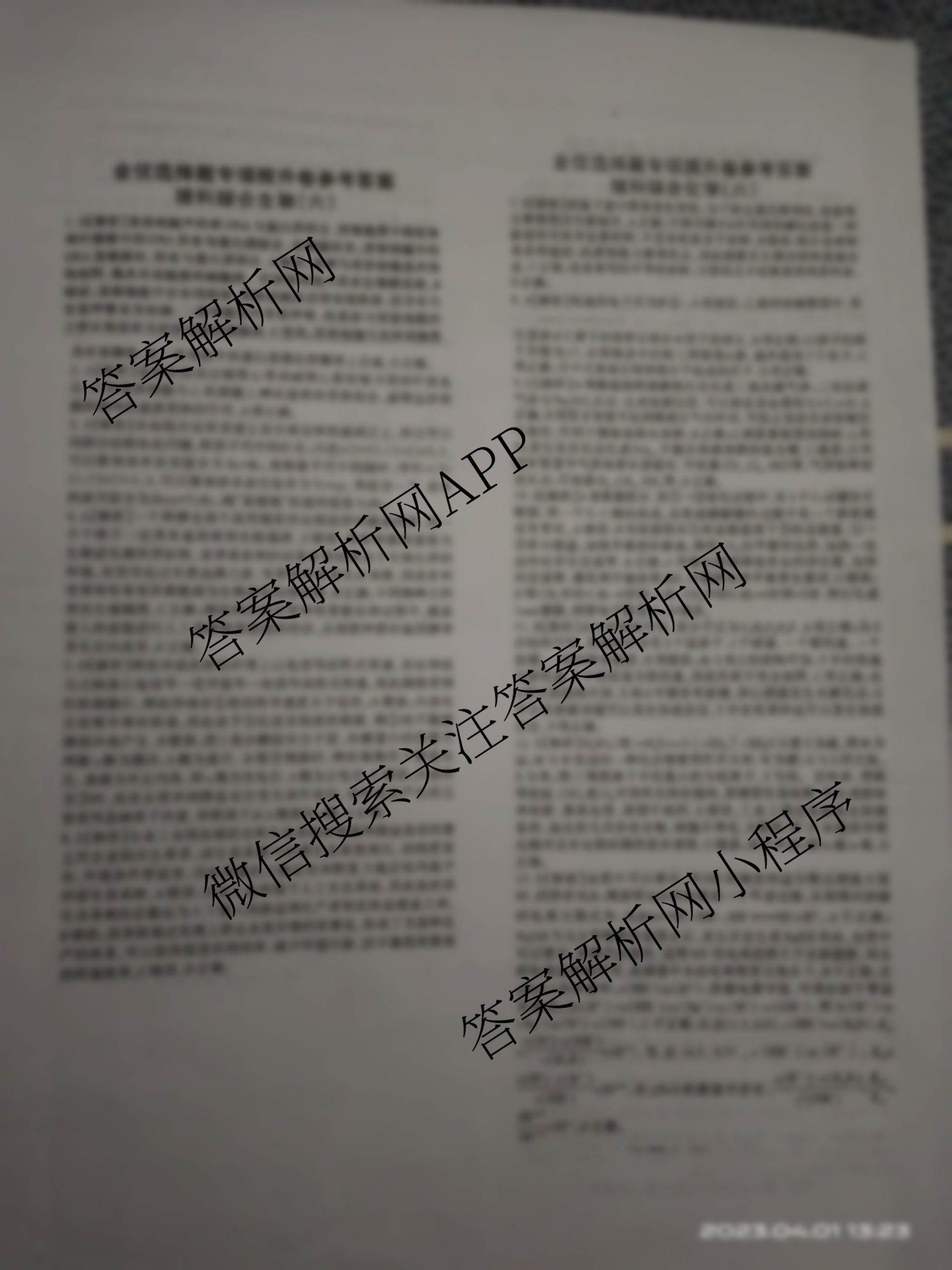 2023届高三JY金优试卷 理综 选择题专项提升卷(六)6答案