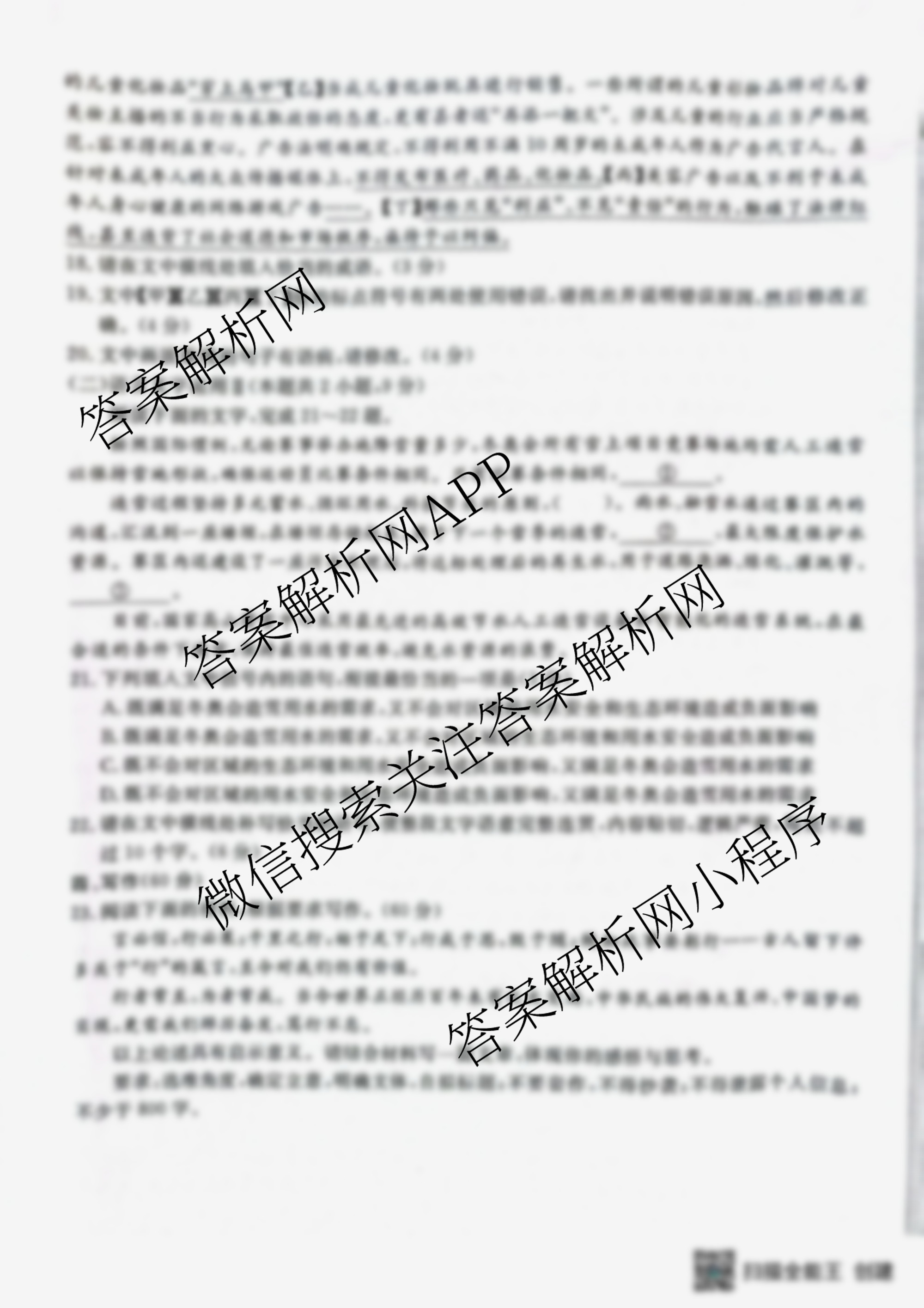 - 2023年[全国高考仿真模拟卷] 语文(XXN)(六)6试题