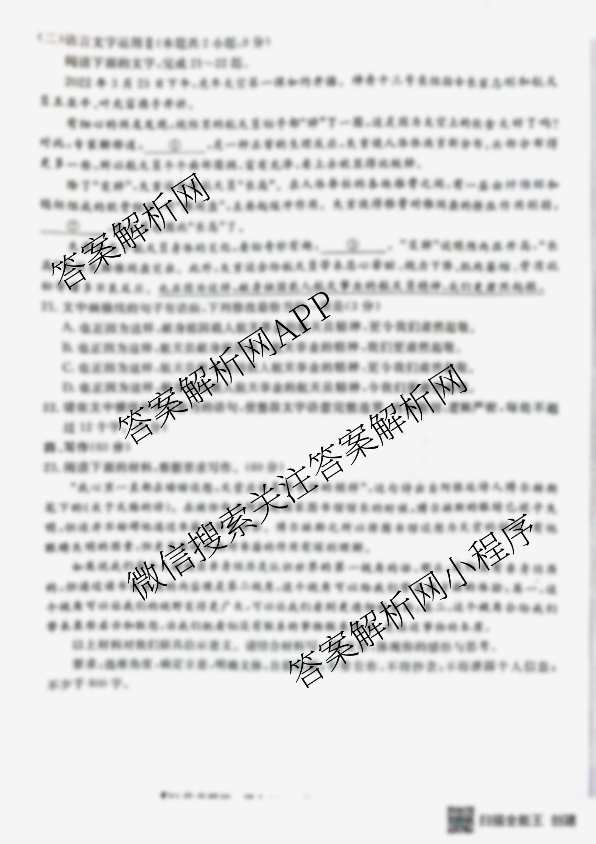 2023年全国高考·仿真模拟卷 语文(XXN)(五)5试题,目前学英语报答案已经汇总了2023年全国高考·仿真模拟卷 语文(XXN)(五)5试题的各科答案和试卷,获取更多全国高考·仿真模拟卷答案解析,请在关注本站。