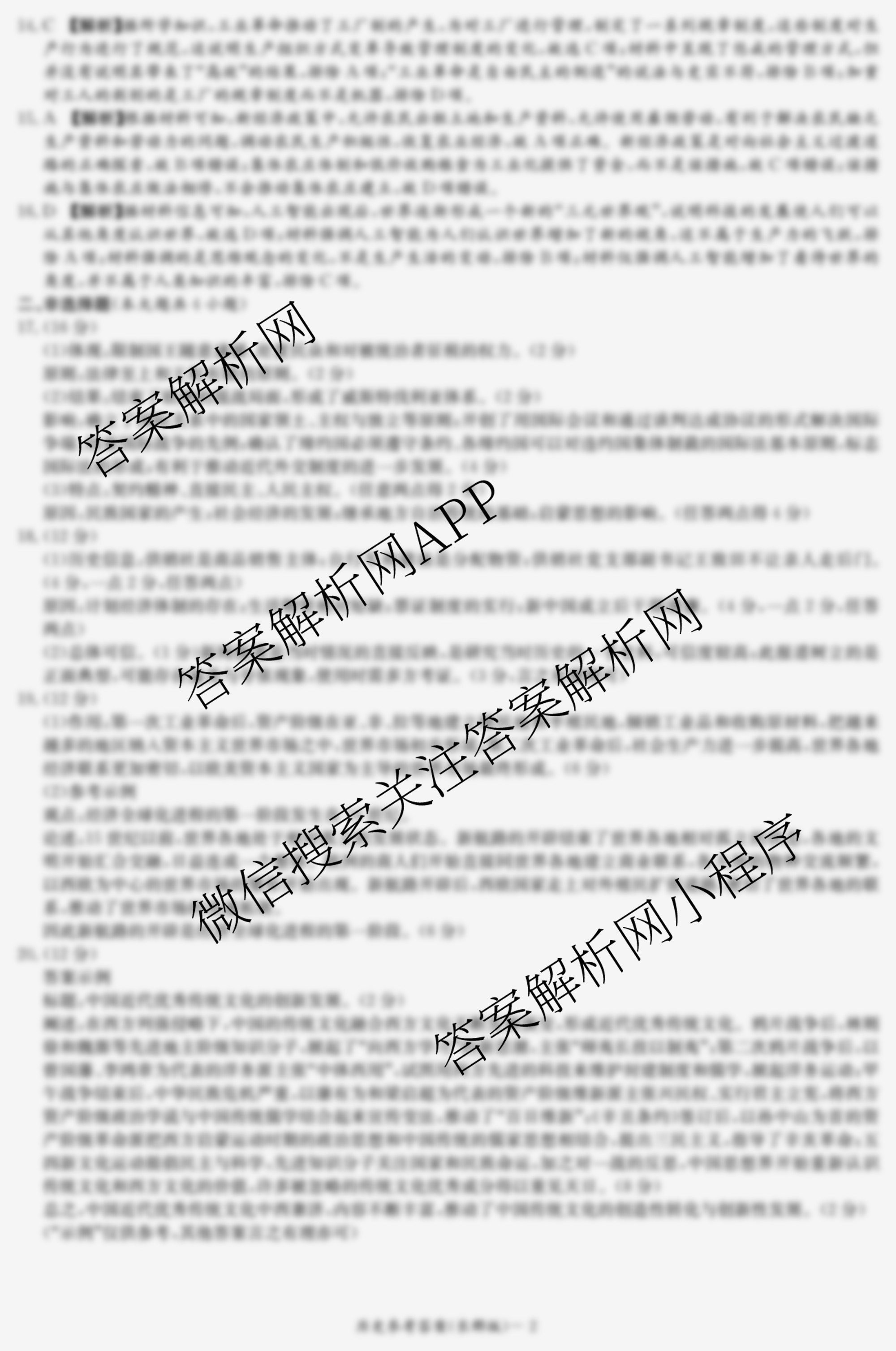 - [高二]长郡中学2022~2023学年度第二学期第一次模块检测历史答案