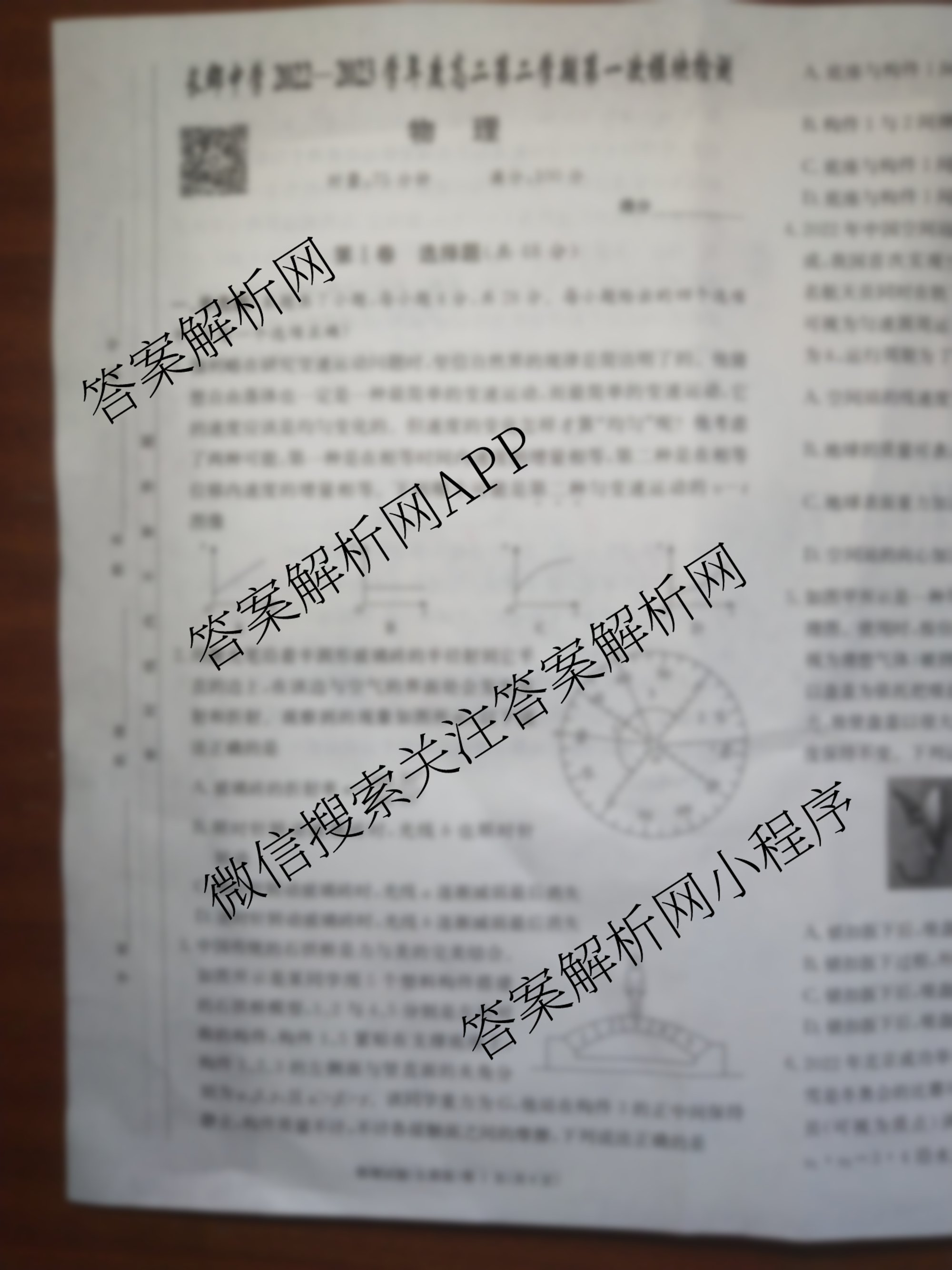 - 2022~2023长郡中学学年度[高二]第二学期第一次模块检测物理答案