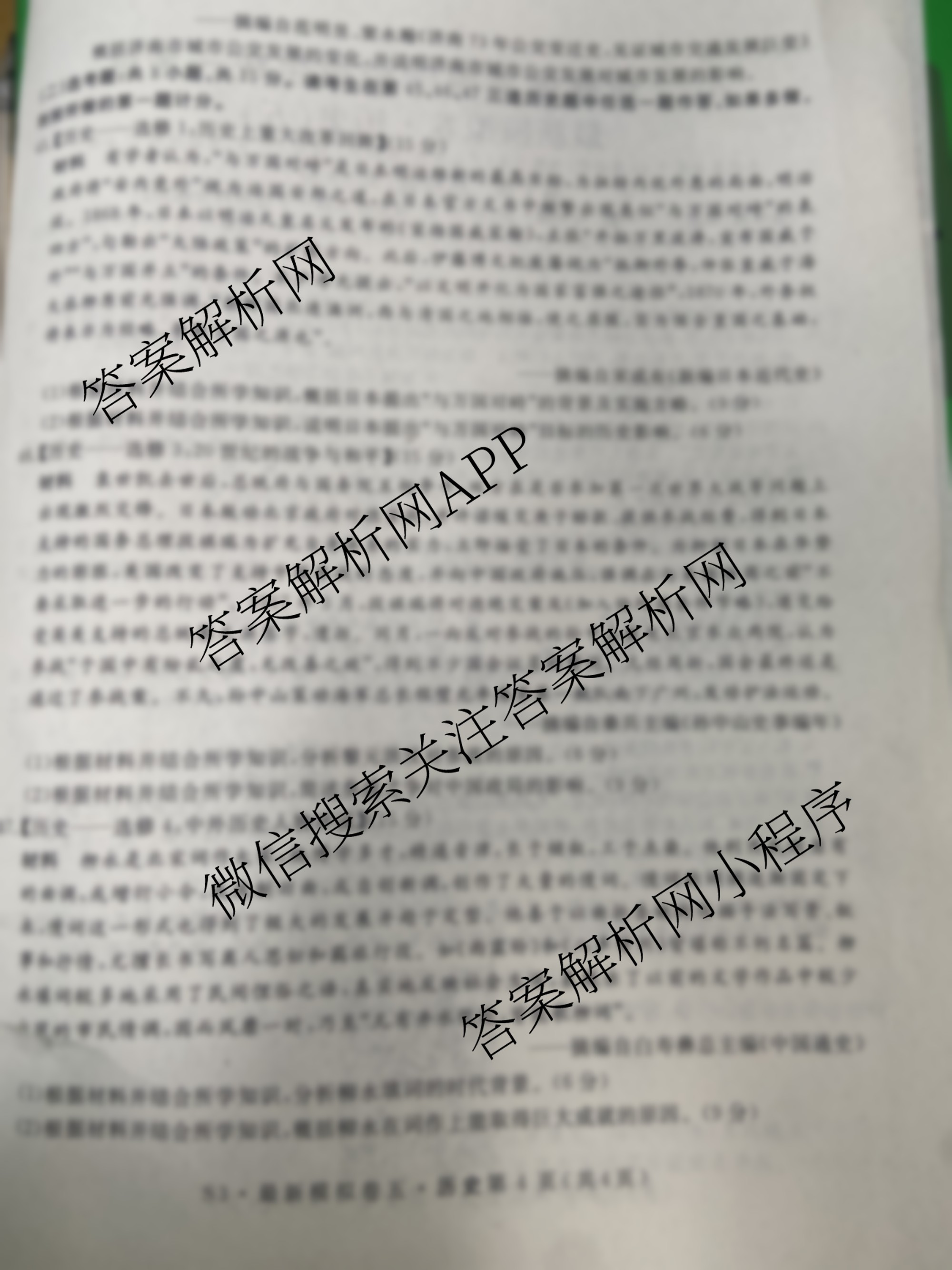 - (高三)2023年普通高等学校招生全国统一考试最新模拟卷 历史(HN3)(五)5答案