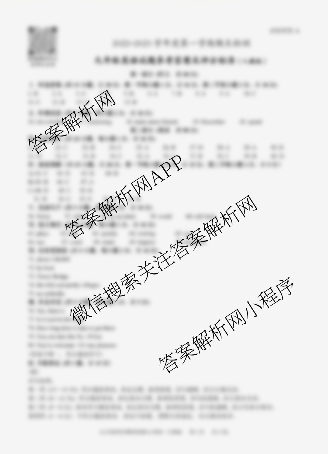 - 陕西[益卷] 2022~2023学年度[九年级]第一学期期末检测英语(A人教版)答案