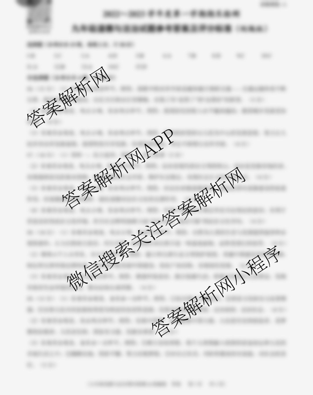 - 九年级陕西[益卷] 2022~2023学年度第一学期期末检测道德与法治(A统编版)答案