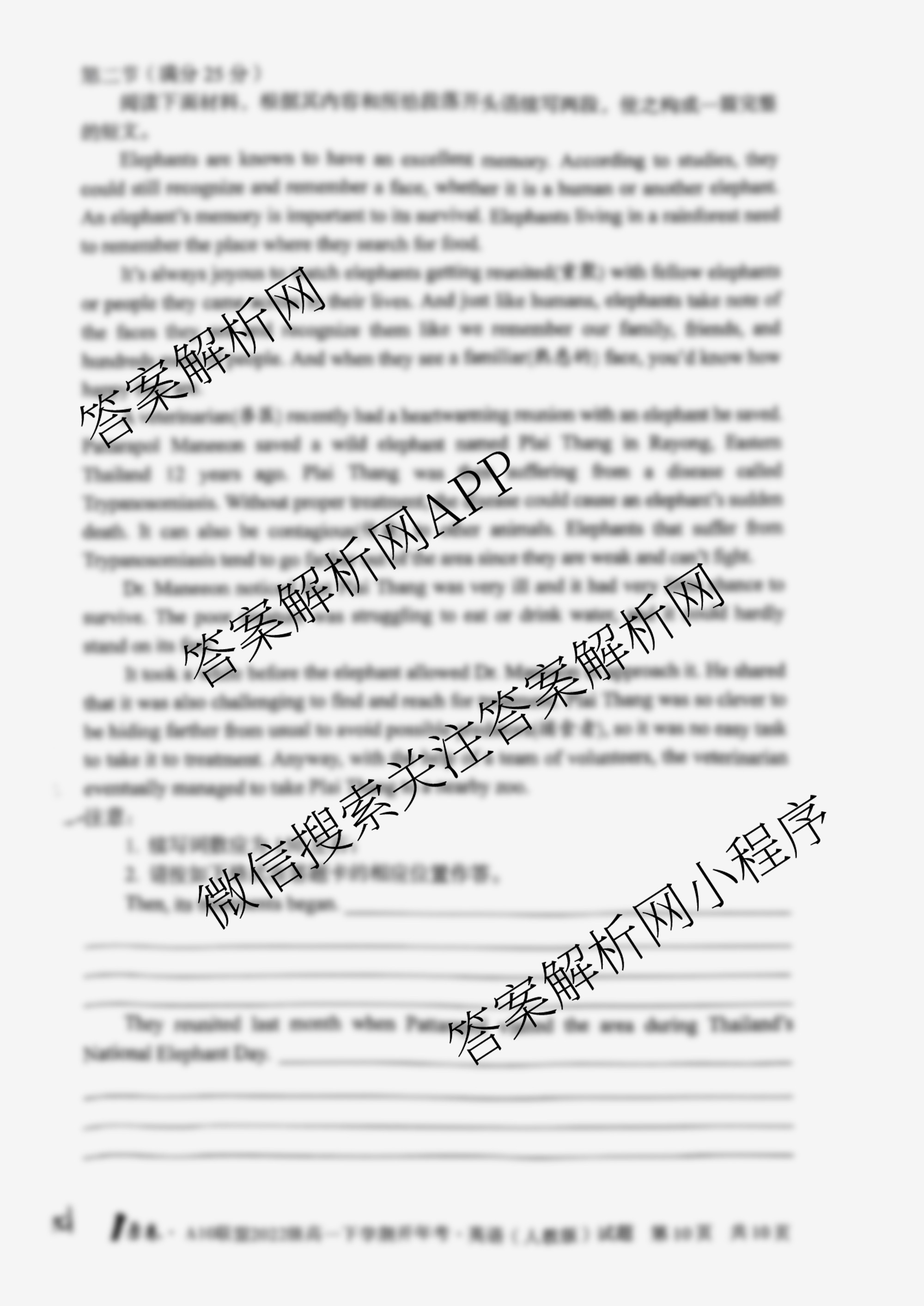 - (高一)[1号卷]A10联盟2022级下学期开年考英语(译林版)试题