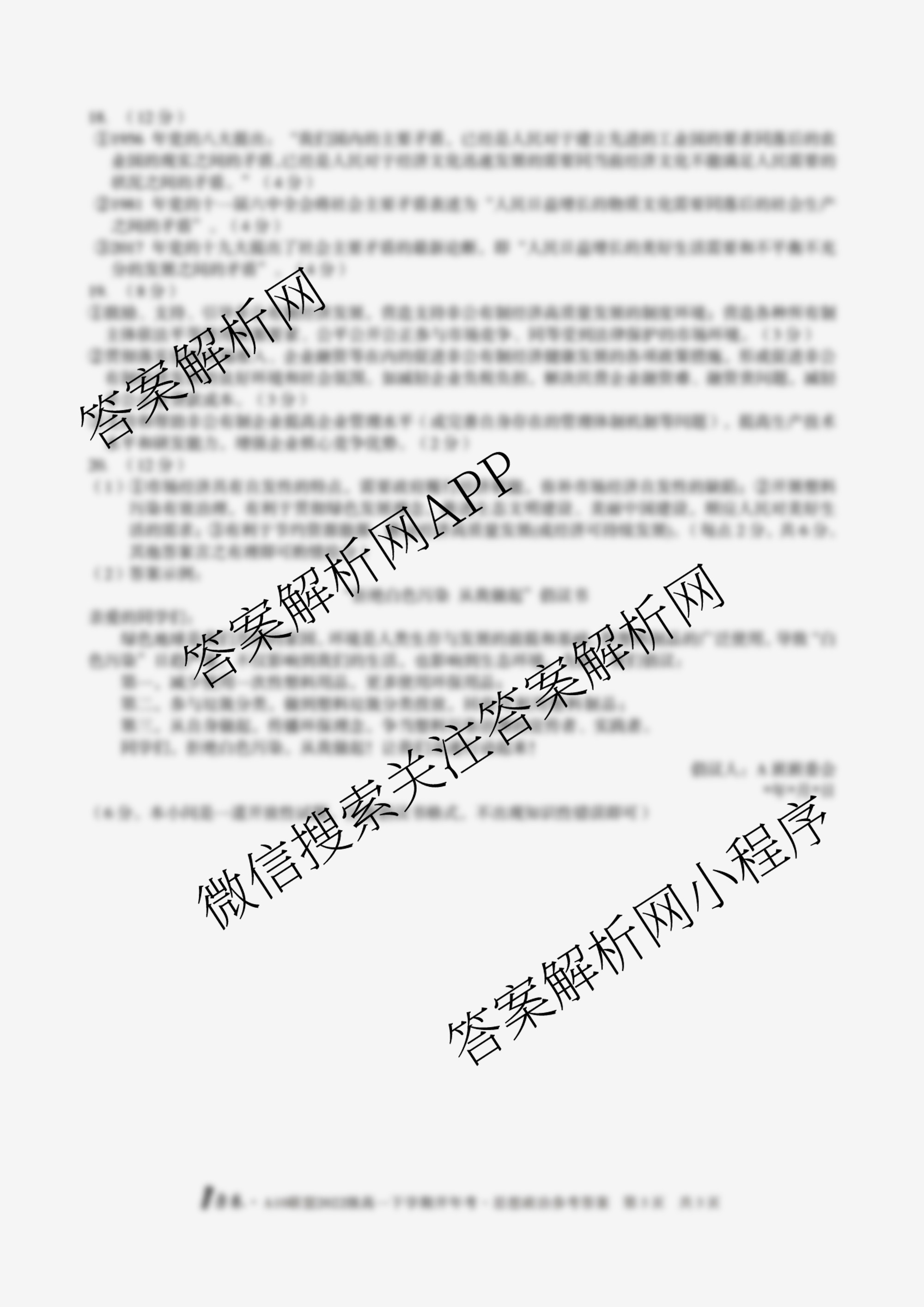 - (高一)[1号卷]·A10联盟2022级下学期开年考政治答案