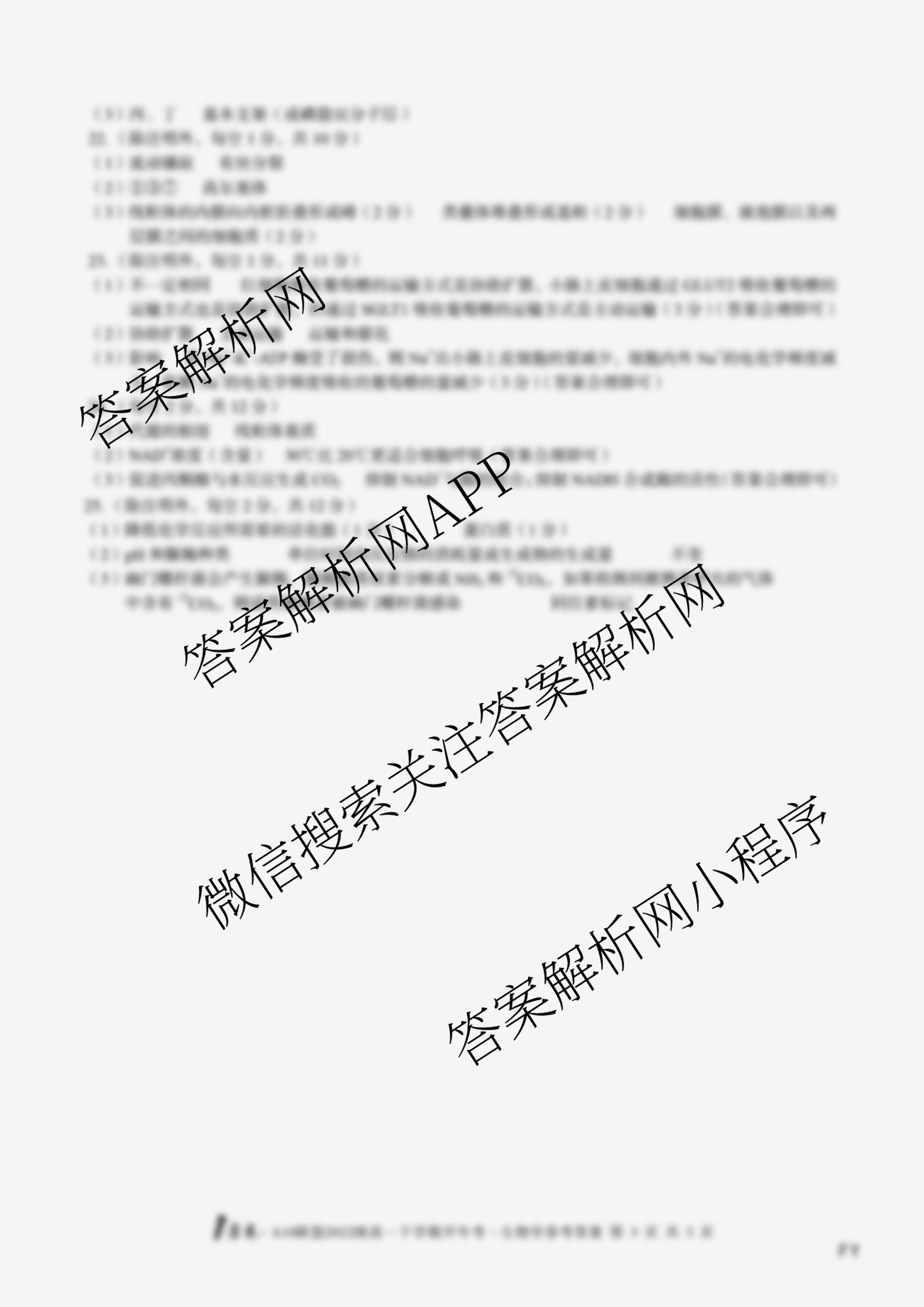 - (高一)[1号卷]·A10联盟2022级下学期开年考生物(HN)答案