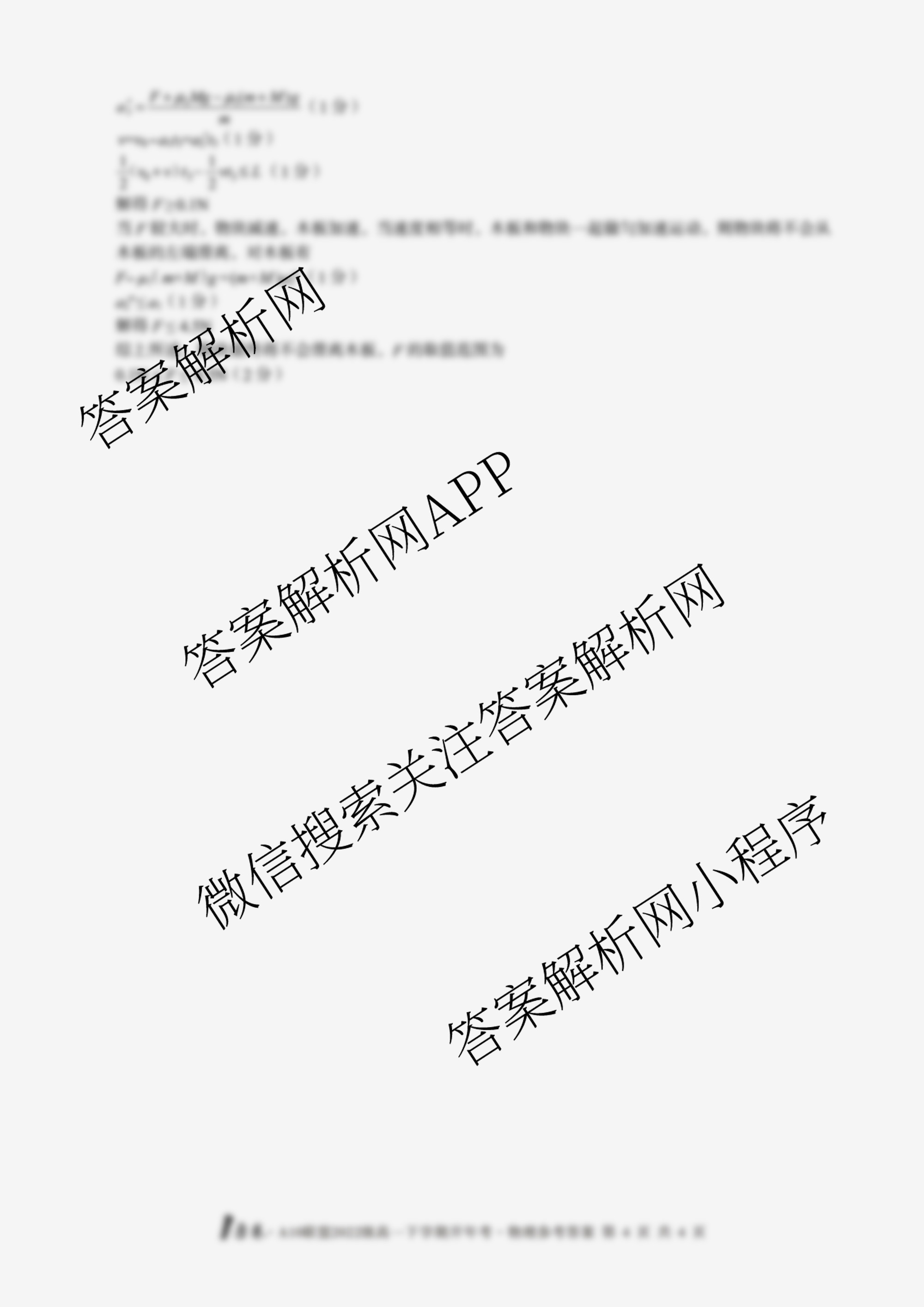 - [高一][1号卷]A10联盟2022级下学期开年考物理答案