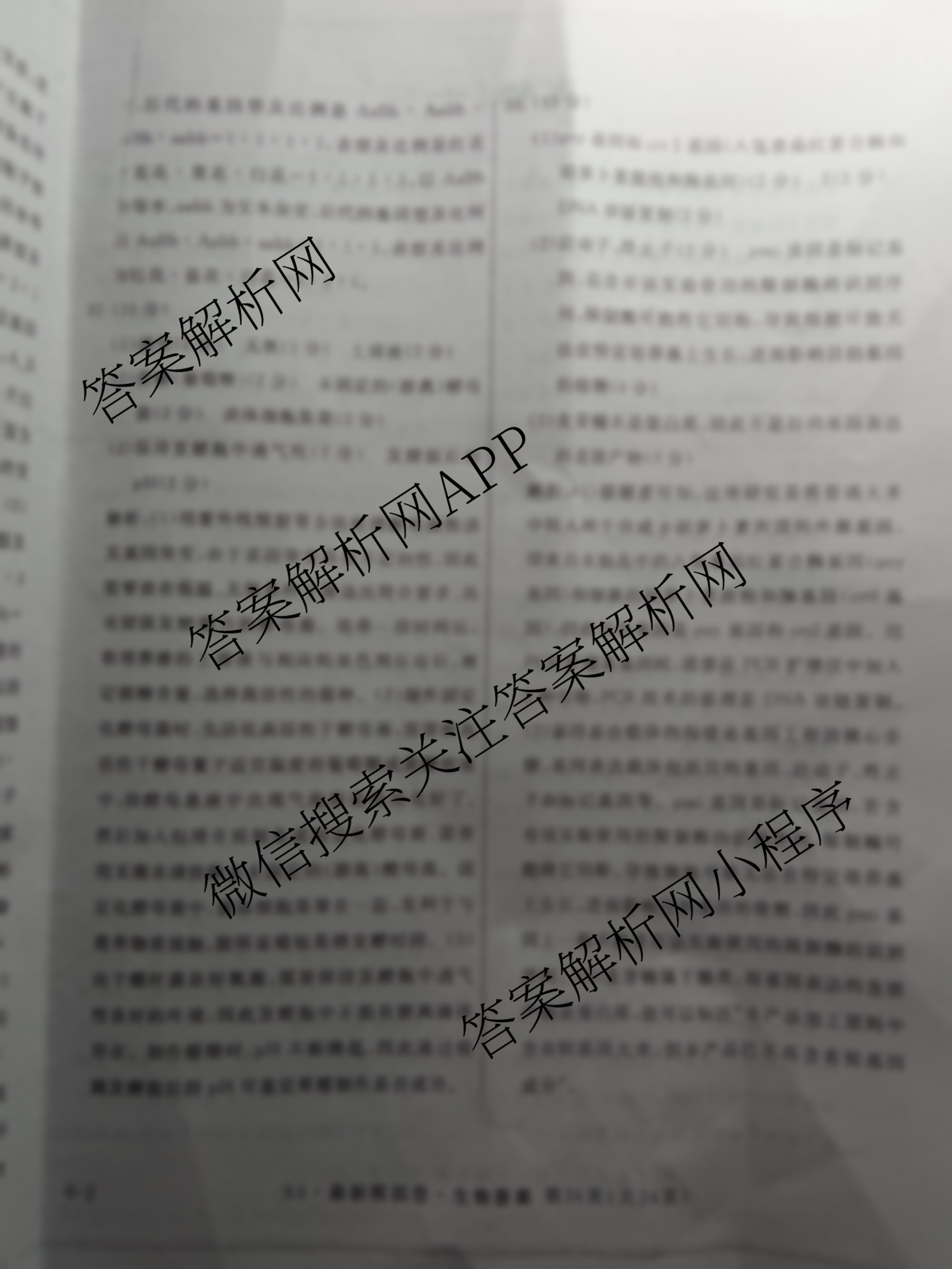 - 2023年普通高等学校招生全国统一考试 最新模拟卷 生物(S3)(六)6答案