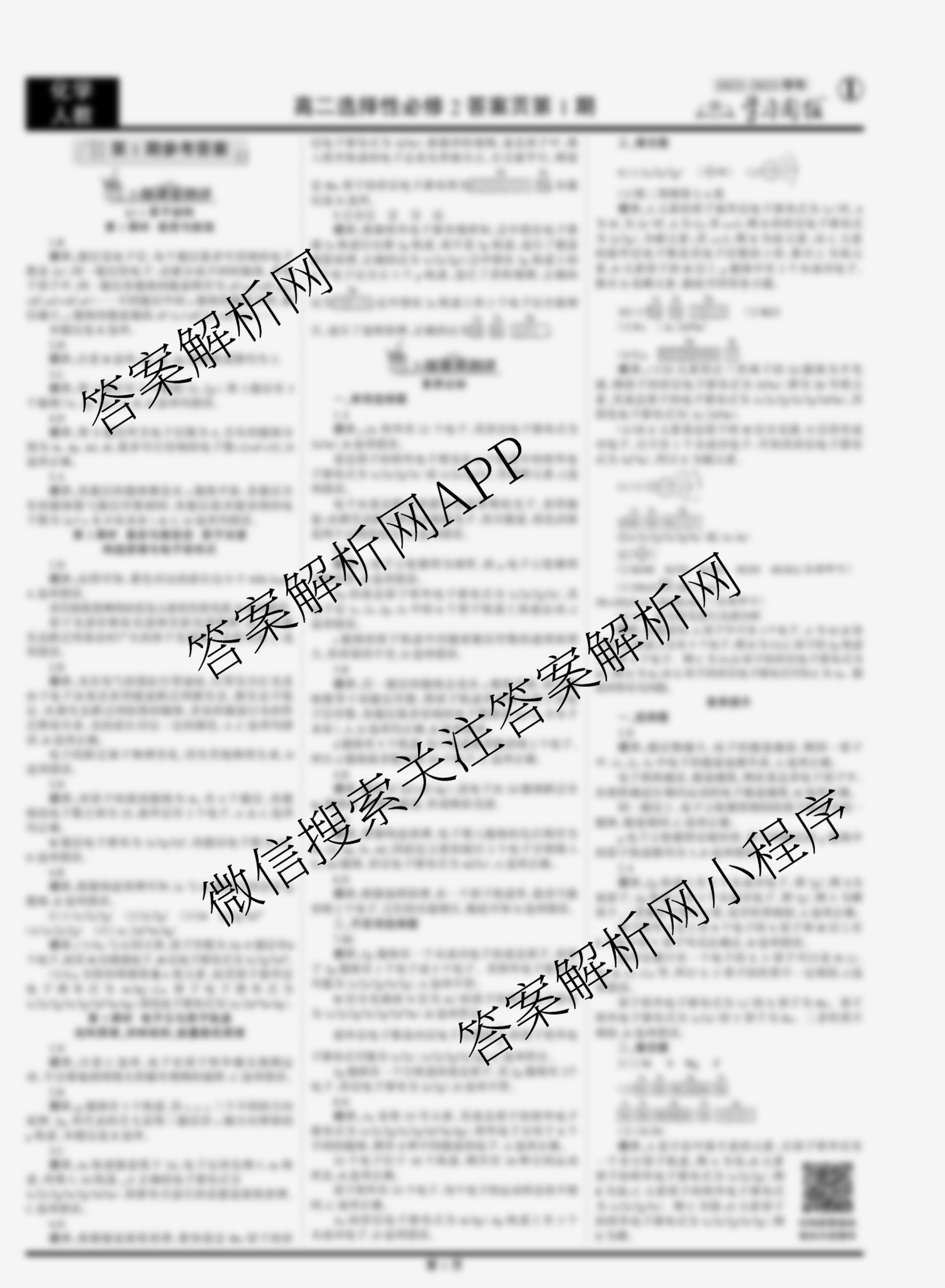2022-2023 学习周报 化学(人教高二选择性必修2)第1期答案