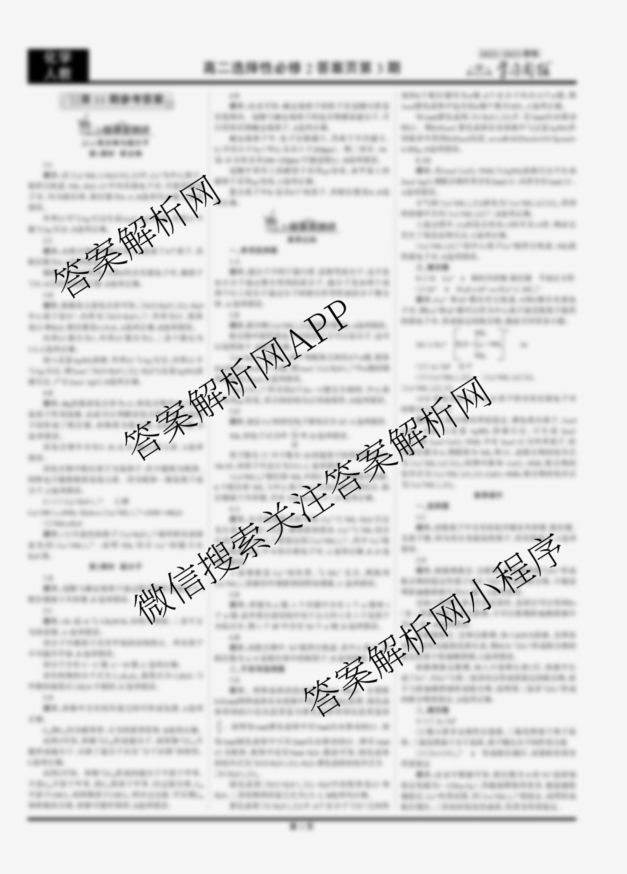 2022-2023 学习周报 化学(人教高二选择性必修2)第11期答案