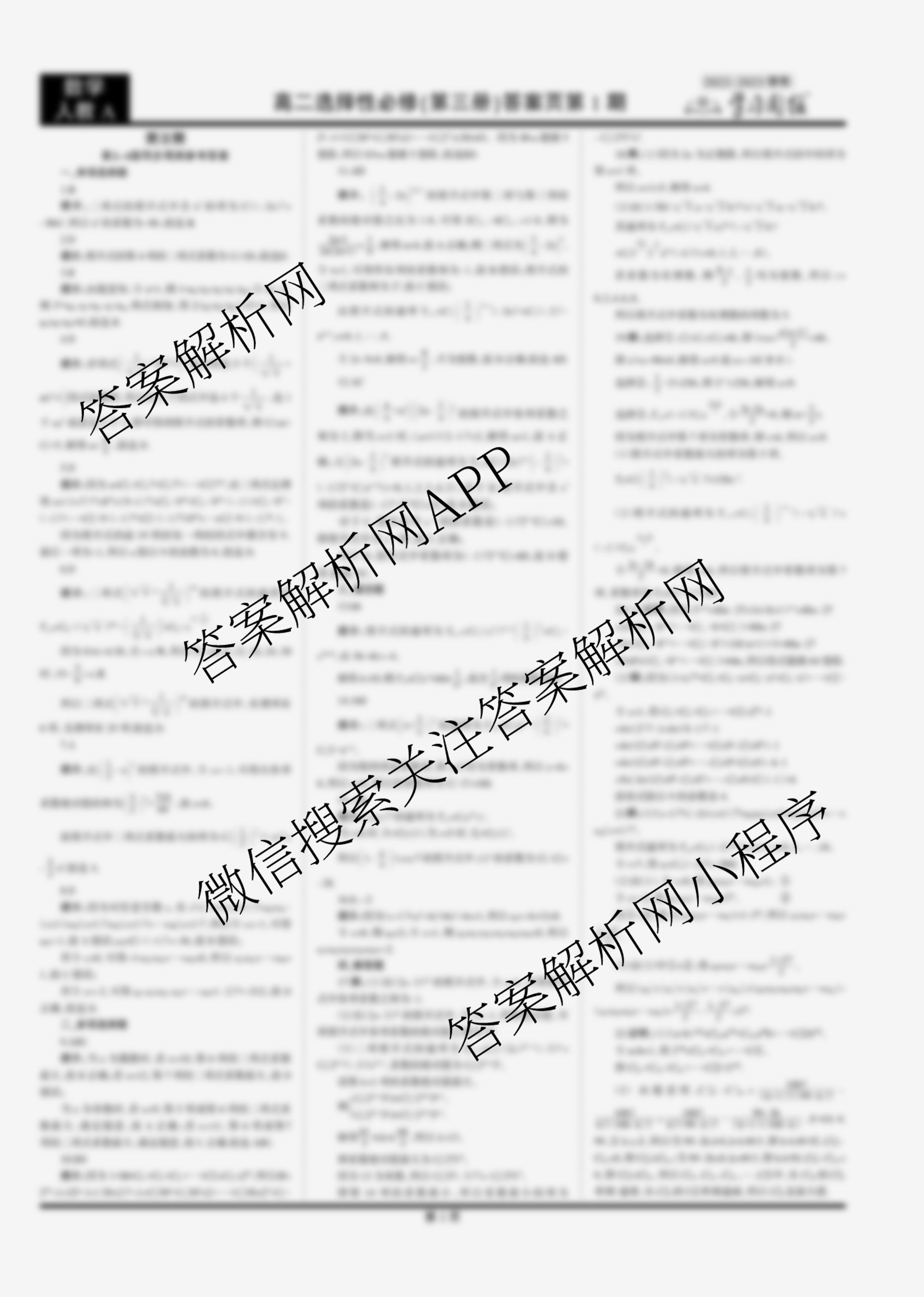 2022-2023 学习周报 数学人教A高二选择性必修(第三册)第3期答案