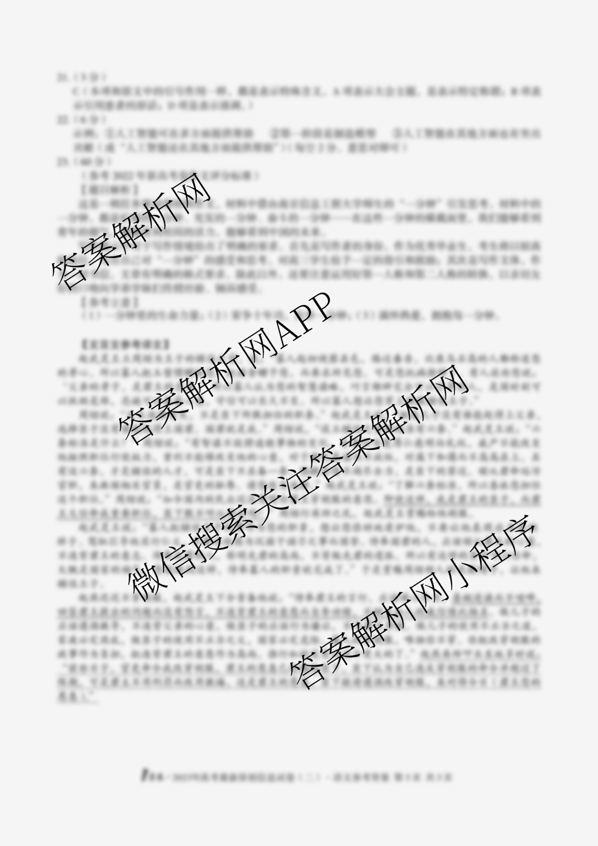 - 2023届[高三]1号卷·全国高考最新原创信息试卷(二)2语文答案