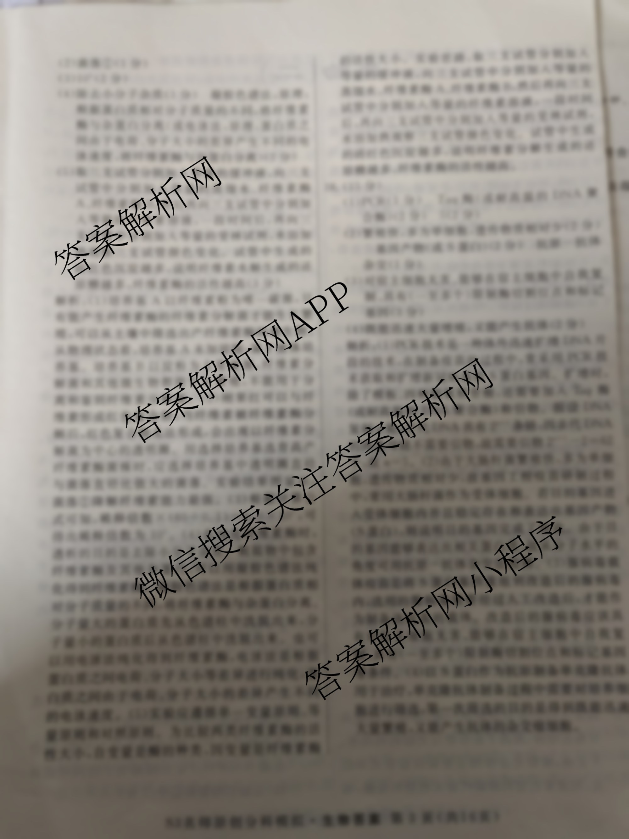 - 2023届(高三)总复习·XS3 名师原创模拟 生物(一)1答案