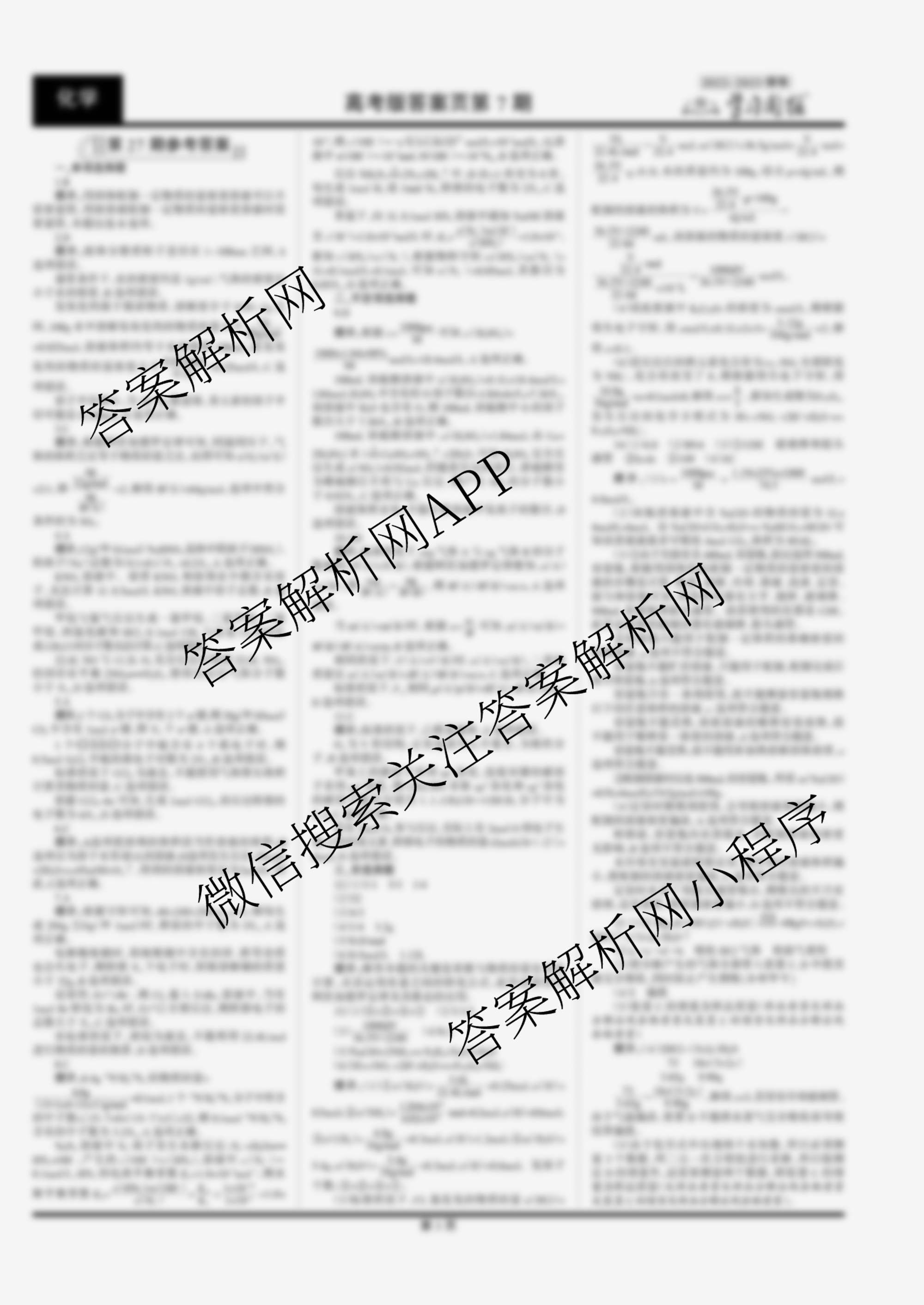 2022-2023学习周报 化学(高考版)第27期答案