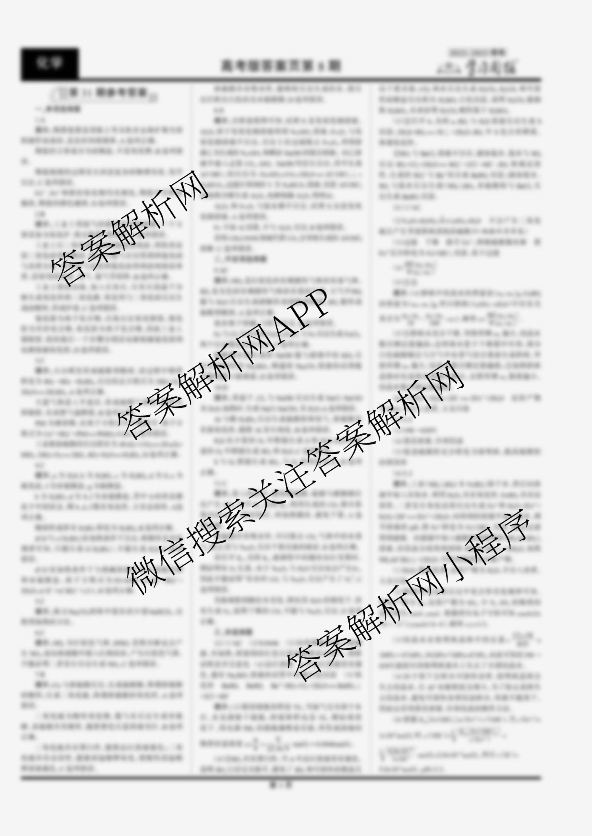 2022-2023学习周报 化学(高考版)第31期答案