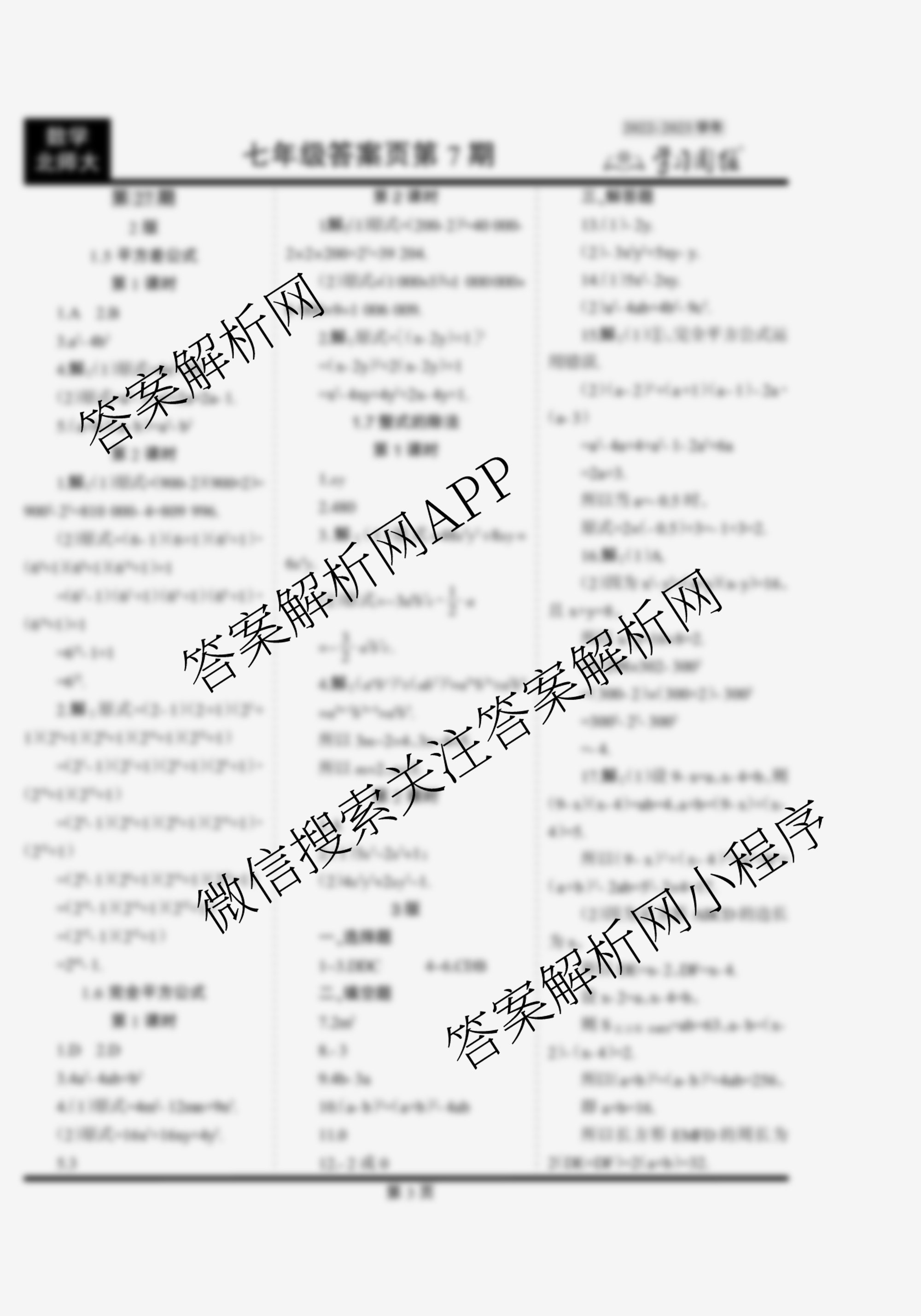 2022-2023 学习周报 数学 七年级(北师大)第27期答案