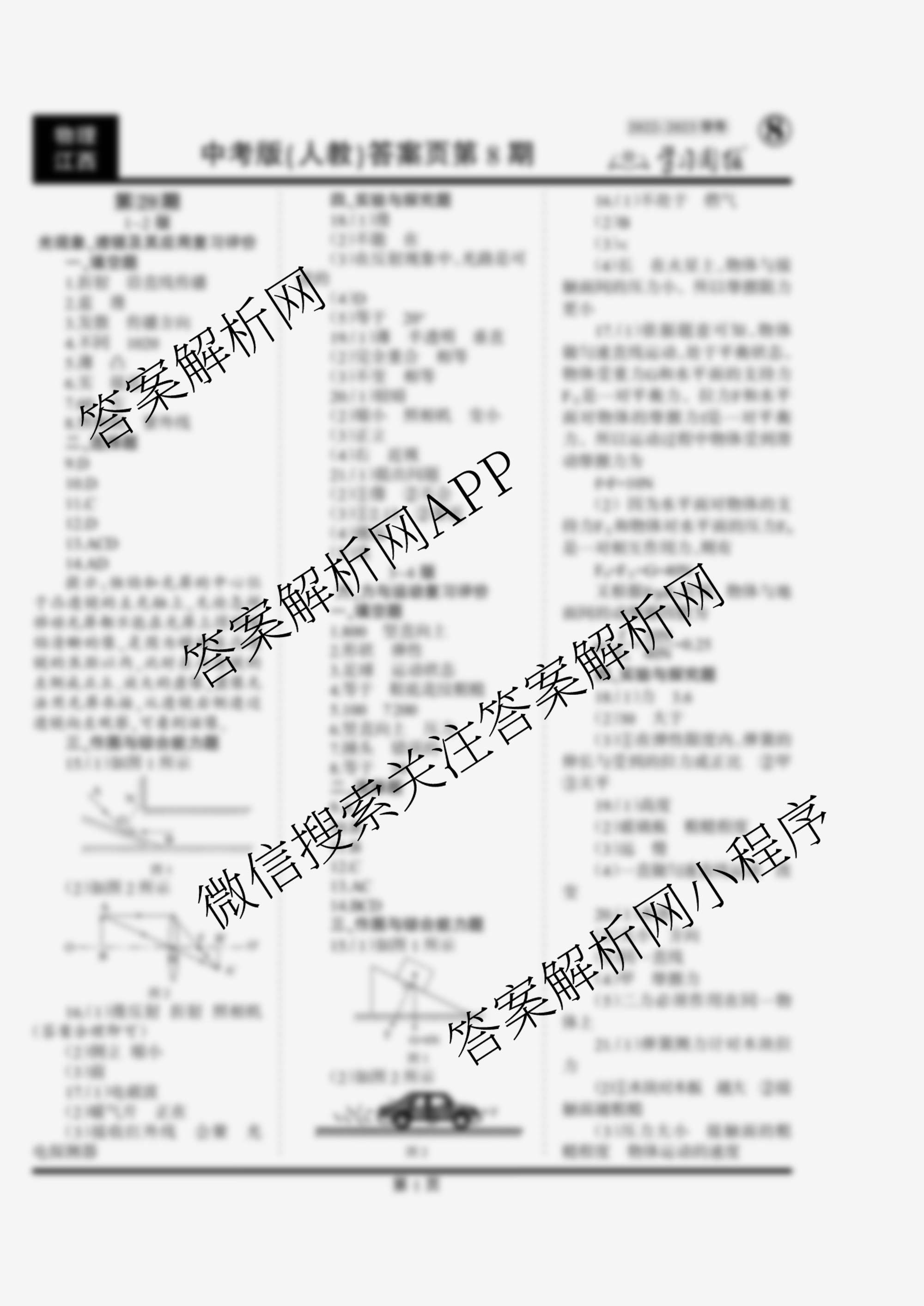 2022-2023 学习周报 物理 中考版(江西人教)第29期答案