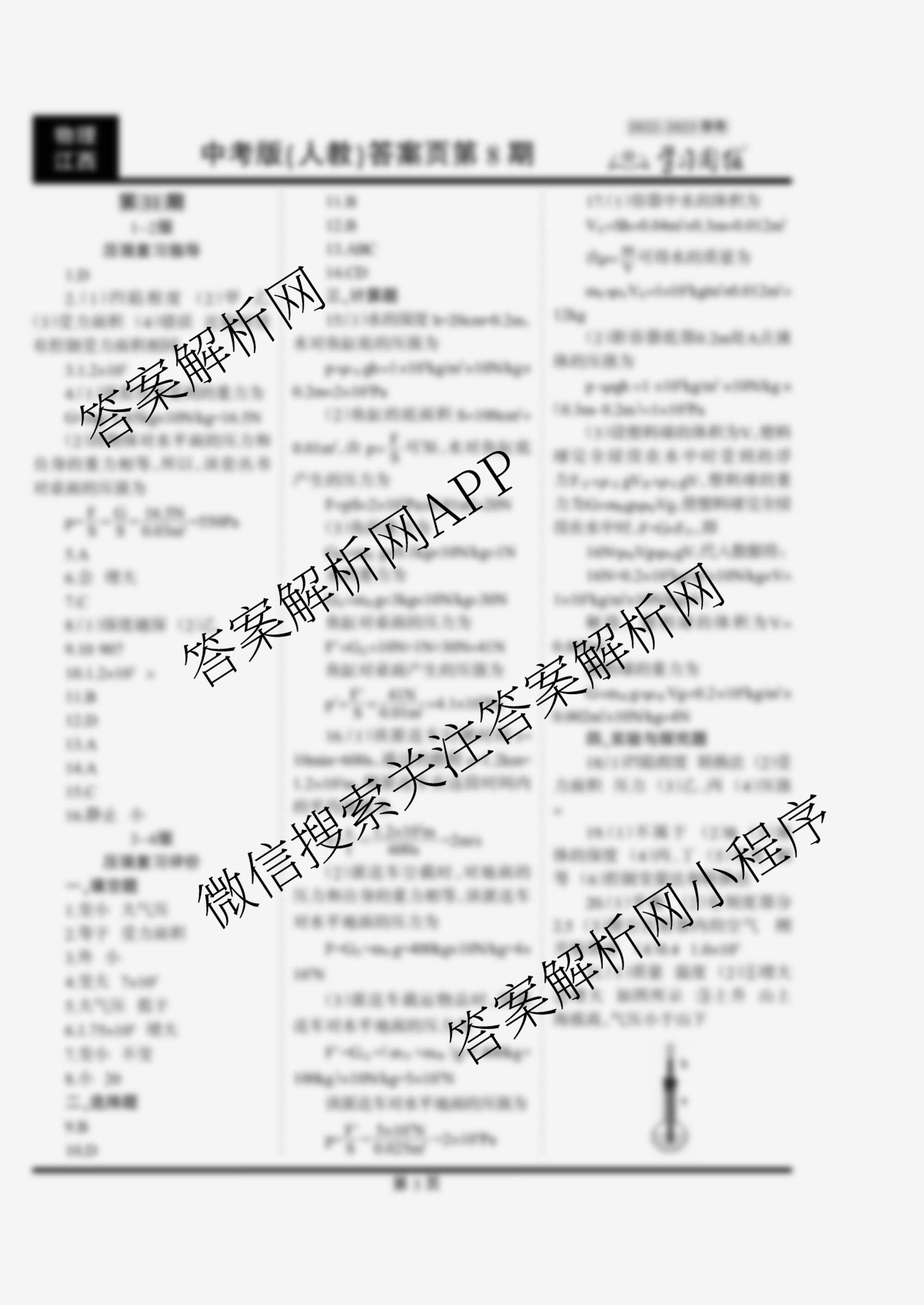 2022-2023 学习周报 物理 中考版(江西人教)第31期答案