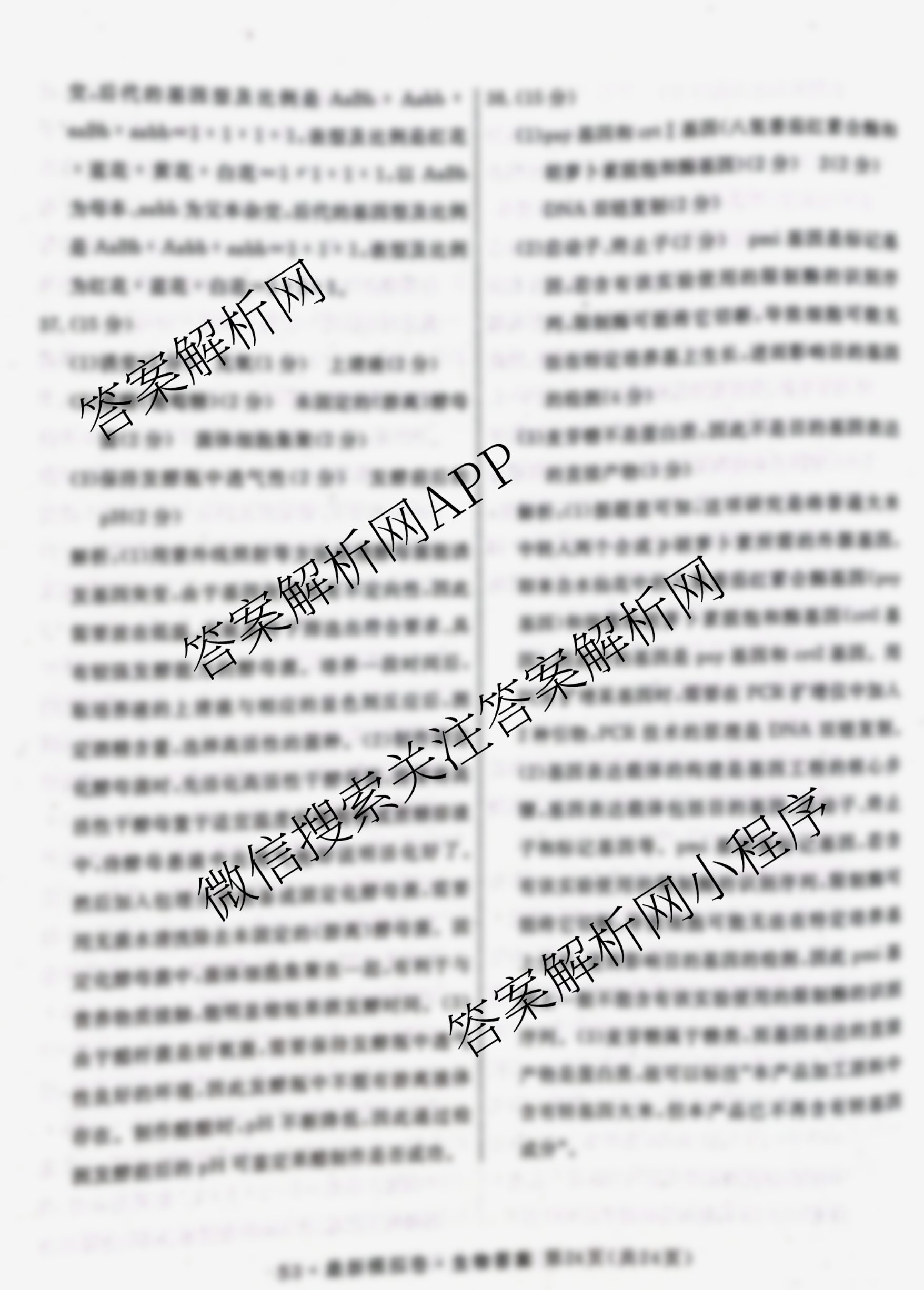 2023年普通高等学校招生全国统一考试 最新模拟卷 生物(S3)(六)6答案