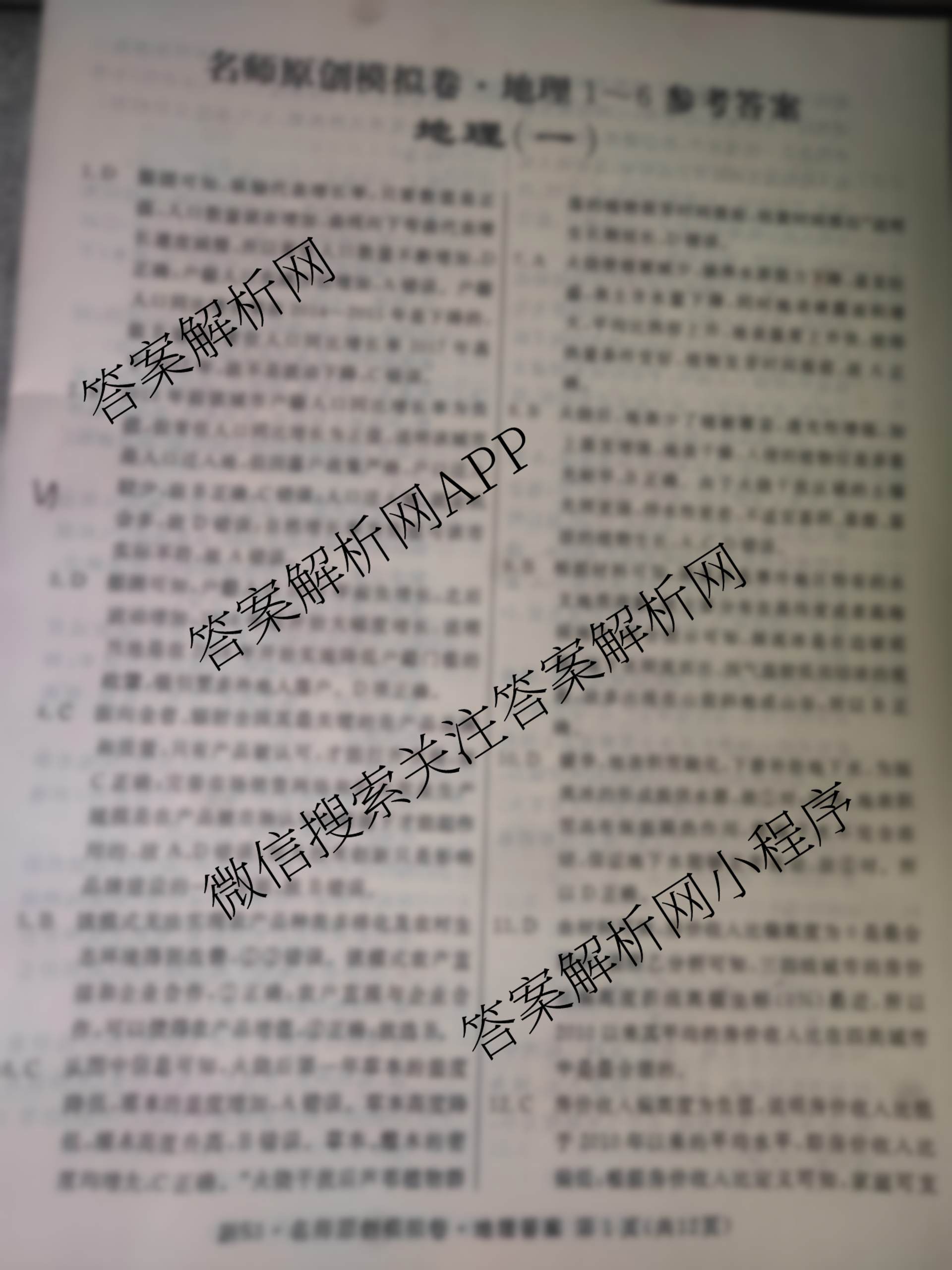 - (高三)2023届总复习S3名师原创模拟 地理(新S3)(一)1答案