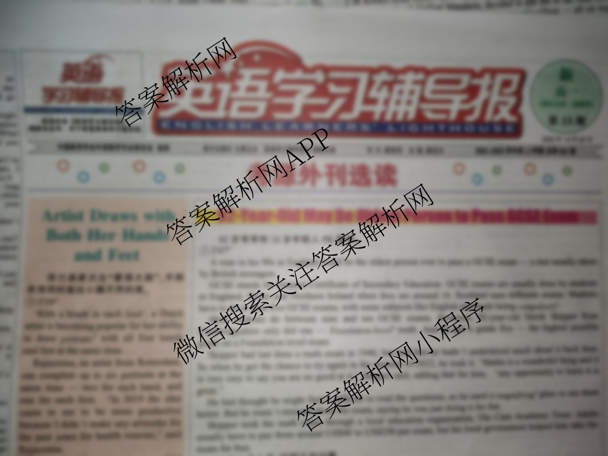 2022-2023 英语学习辅导报 高一 课标全国-新题型第15期答案,目前学英语报答案已经汇总了2022-2023 英语学习辅导报 高一 课标全国-新题型第15期答案的各科答案和试卷,获取更多英语学习辅导报答案解析,请在关注本站。