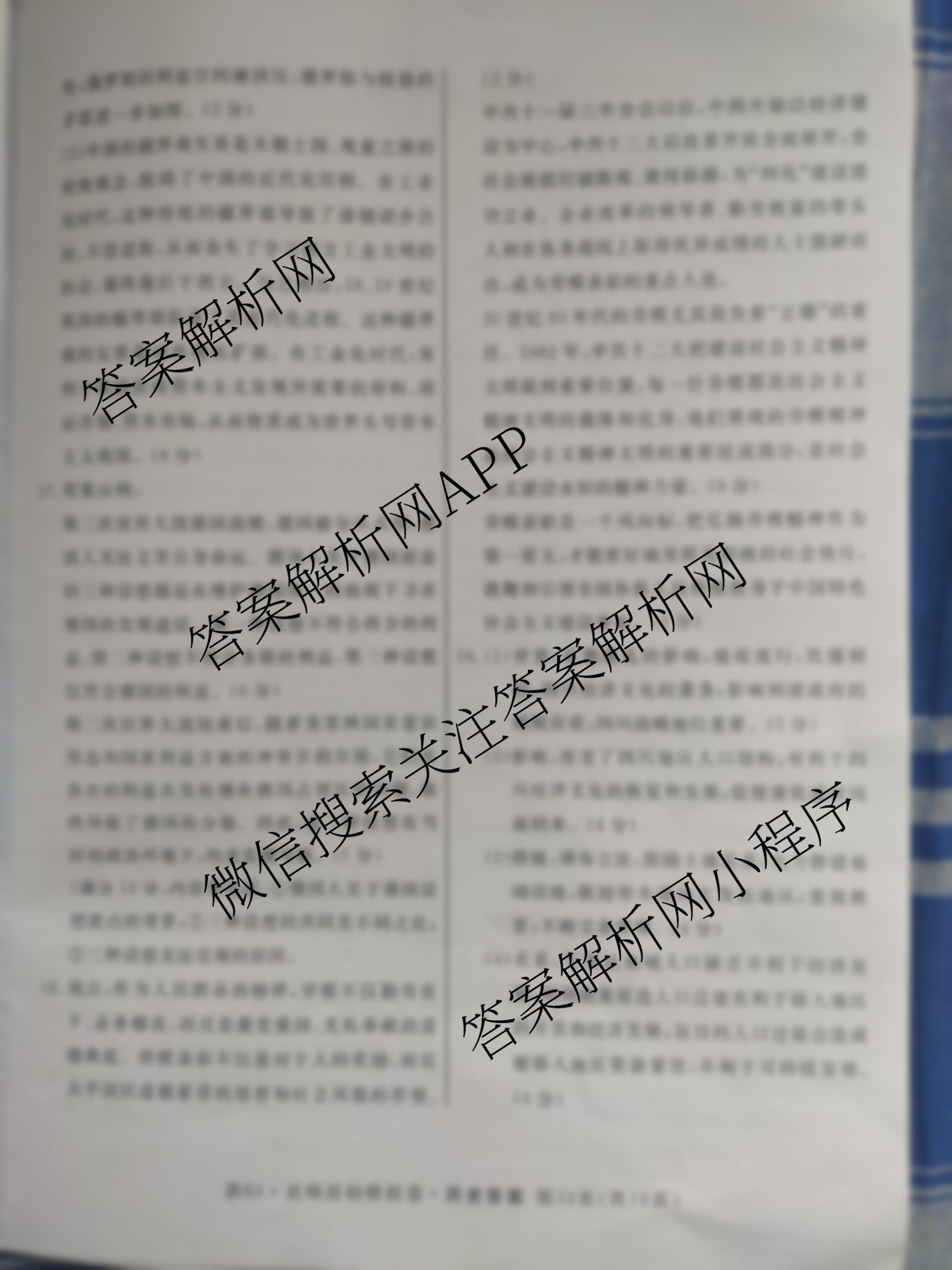 2023届高三总复习S3名师原创模拟 历史(新S3)(十一)11答案