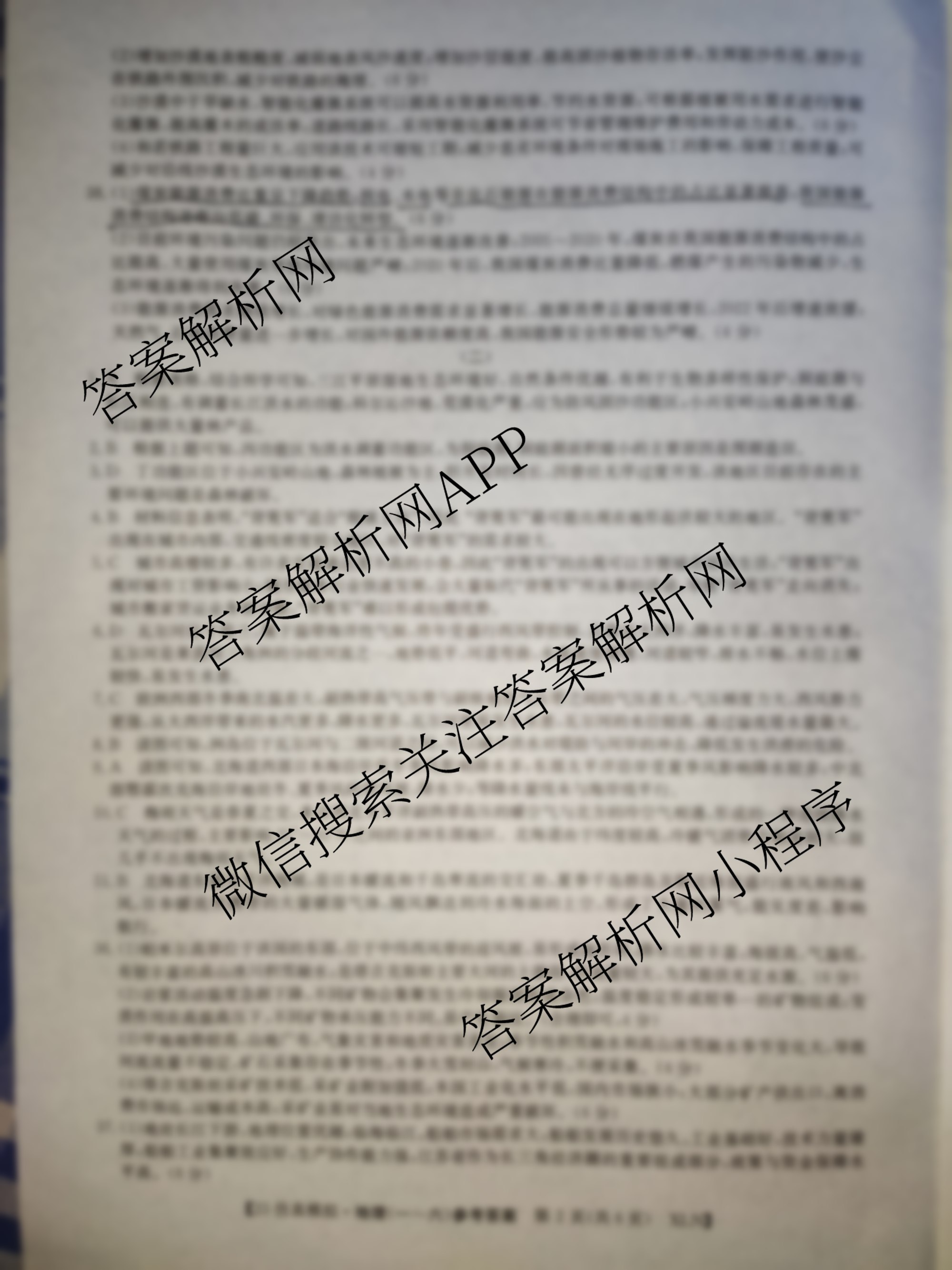 高三2023年[全国高考·仿真模拟卷] 文综(XLN)(一)1答案