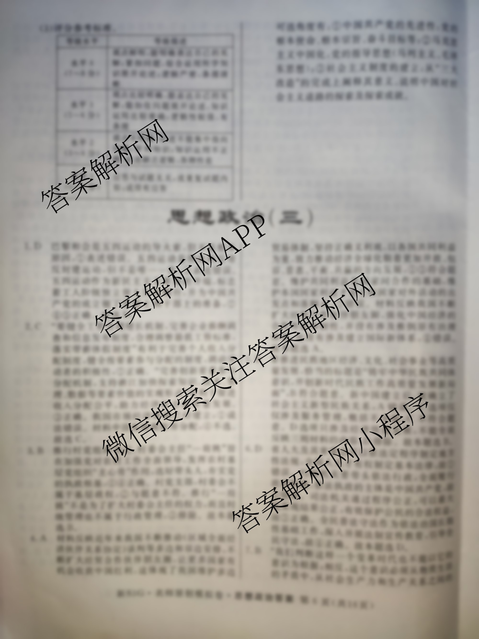 2023届[高三]总复习新S3G名师原创模拟政治(二)2答案