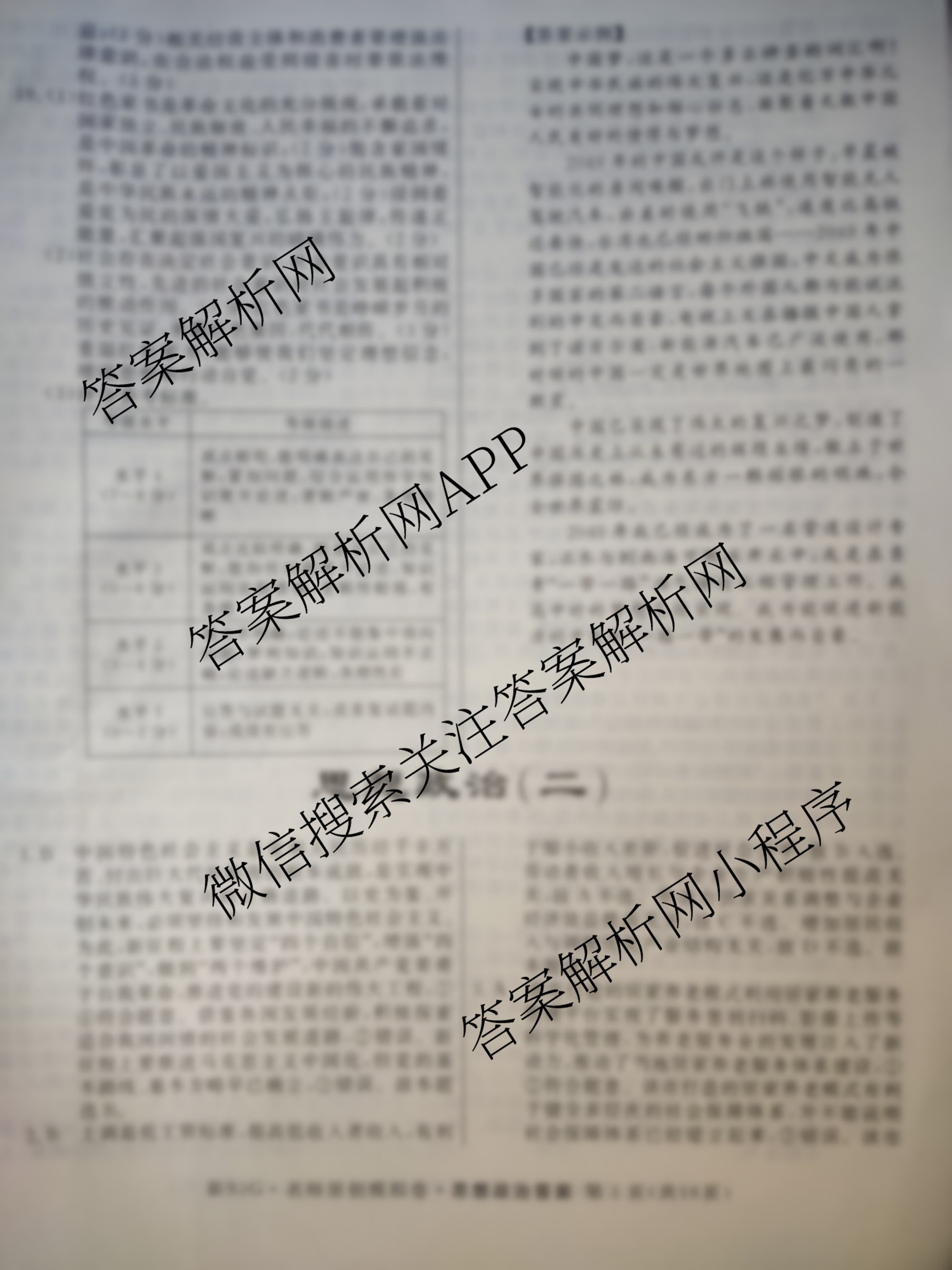 2023届(高三)总复习新S3G名师原创模拟政治(一)1答案