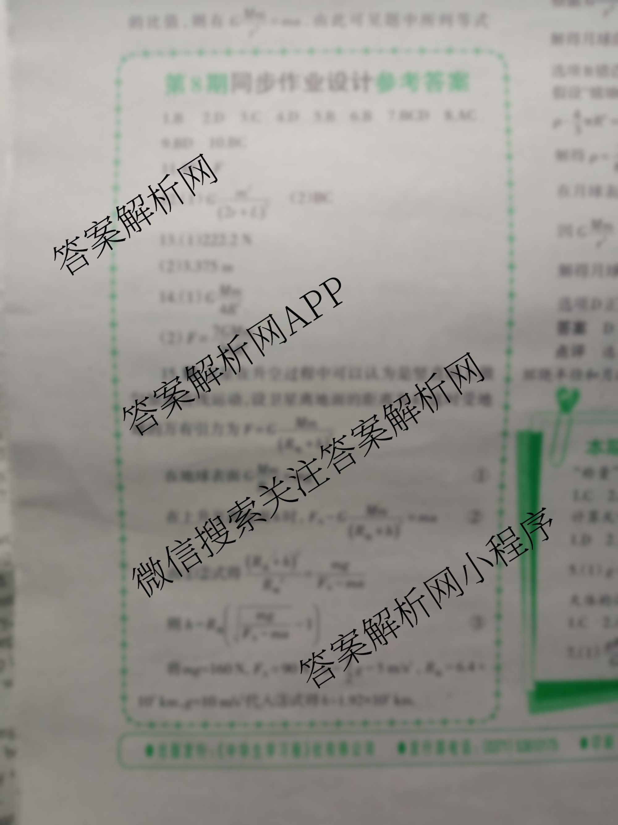 2022-2023 中学生学习报 物理周刊 人教高中必修第二册第8期答案