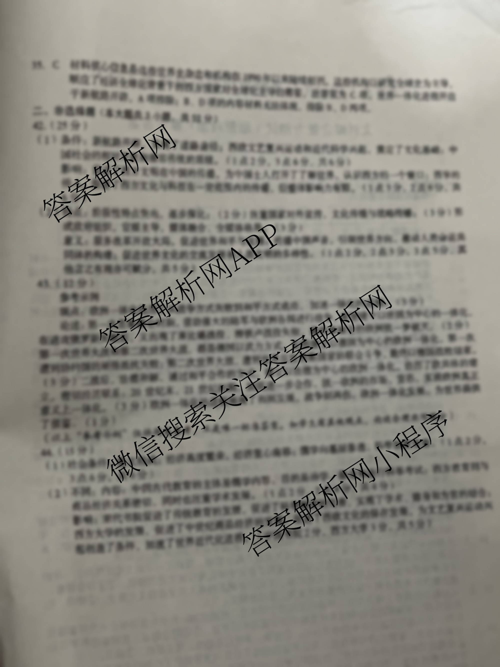 2023届[1号卷]全国高考最新原创信息试卷(一)1文综答案