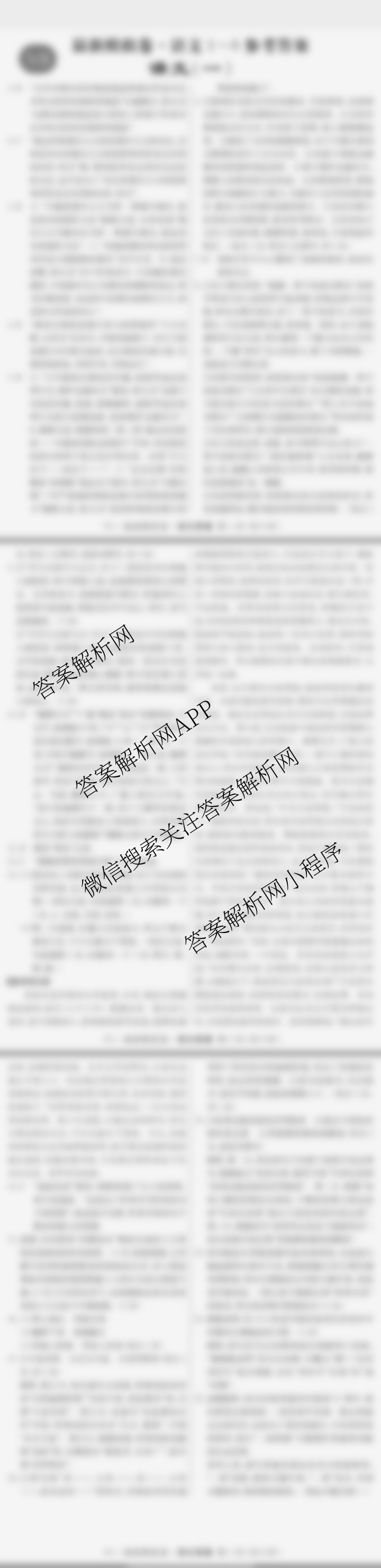 - [高三]2023年普通高等学校招生全国统一考试 最新模拟卷语文(S3J)(一)1答案