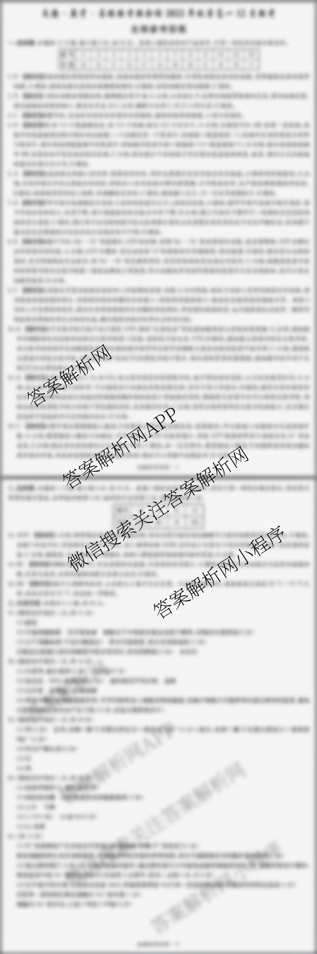 - 炎德英才名校联考联合体 2022年秋季[高一]年级12月联考生物答案
